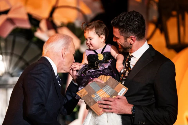 ABD Başkanı Joe Biden, dün gece Beyaz Saray‘daki Cadılar Bayramı etkinliğinde üç bebeğe şaka yollu ısırma hareketi yaparken, eşi Jill Biden ise panda kostümü giydi.