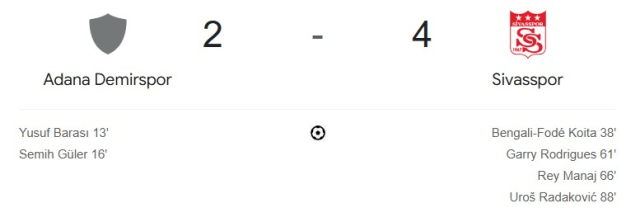 ADANA DEMİRSPOR SİVASSPOR MAÇI KAÇ KAÇ BİTTİ?