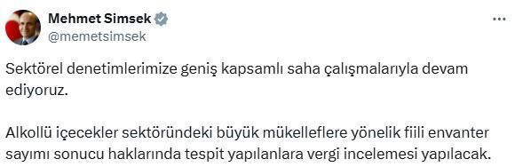 Hazine ve Maliye Bakanı Şimşek, konuya ilişkin değerlendirmesinde, kayıt dışılığın önlenmesine yönelik yürütülen mücadele kapsamında saha çalışmalarının hız kesmeden sürdüğünü belirterek, şunları kaydetti: “Vergide adalet ve verimlilik ilkemiz çerçevesinde kayıt dışı faaliyet gösteren mükelleflere ilişkin saha denetimlerimiz derinleşiyor. Fiili envanter sayımı sonucunda haklarında tespit yapılan mükellefler vergi incelemesine alınacak. Tüm sektörlere yönelik inceleme ve saha denetimlerini plan dahilinde sürdürerek denetimsiz hiçbir alan bırakmıyoruz.”