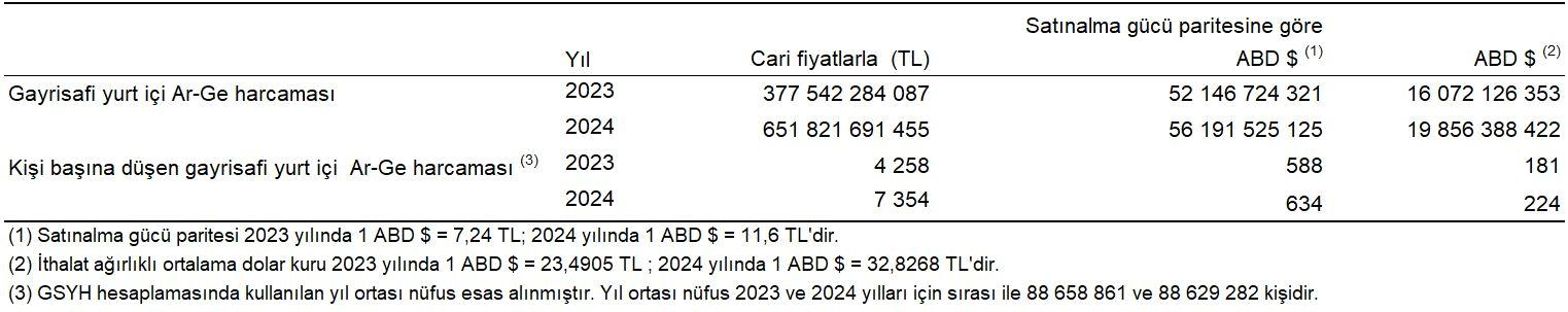 Gayrisafi yurt içi Ar-Ge harcaması, 2023-2024