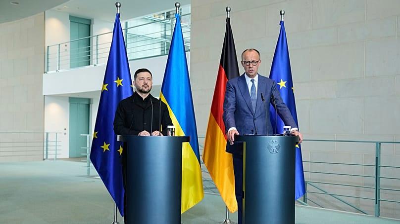 Ukrainian President Volodymyr Zelenskyy made a brief visit to the German capital for talks with Chancellor Friedrich Merz.