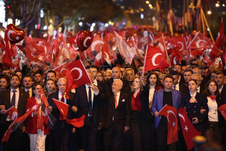 Başkan Mustafa Bozbey ve Başkan Şadi Özdemir, yürüyüş öncesi ortak açıklama yaptı. Cumhuriyet’i alanlarda kutladıklarını ve alanlarda sahip çıktıklarını belirten Başkan Bozbey, “102 yıl önce Ulu Önder Gazi Mustafa Kemal Atatürk ve arkadaşları, Cumhuriyeti gençlere emanet ederek yola çıktılar. Bizler de onların izinde Cumhuriyetimize sahip çıkmaya devam edeceğiz. Cumhuriyet Bayramımız, bizim en büyük bayramımızdır. Bu bayramı alanlarda Cumhuriyet sevdalılarıyla birlikte kutluyoruz. Yaşasın Cumhuriyet! Yaşasın Atatürk! Yaşasın tam bağımsız Türkiye! 29 Ekim Cumhuriyet Bayramımız kutlu olsun” dedi.
