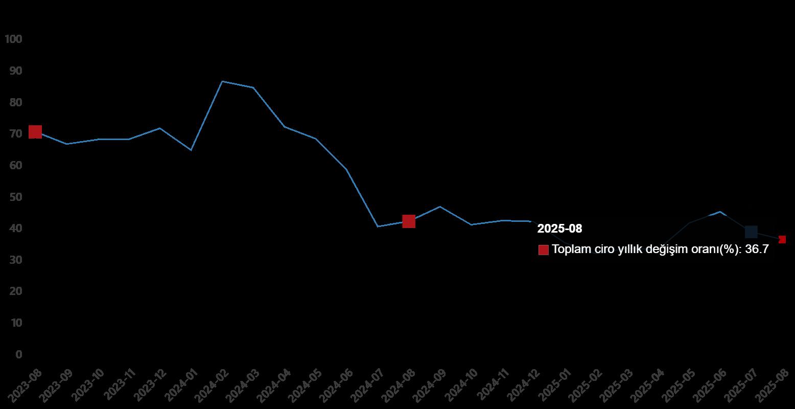 Toplam ciro yıllık değişim oranı(%), Ağustos 2025