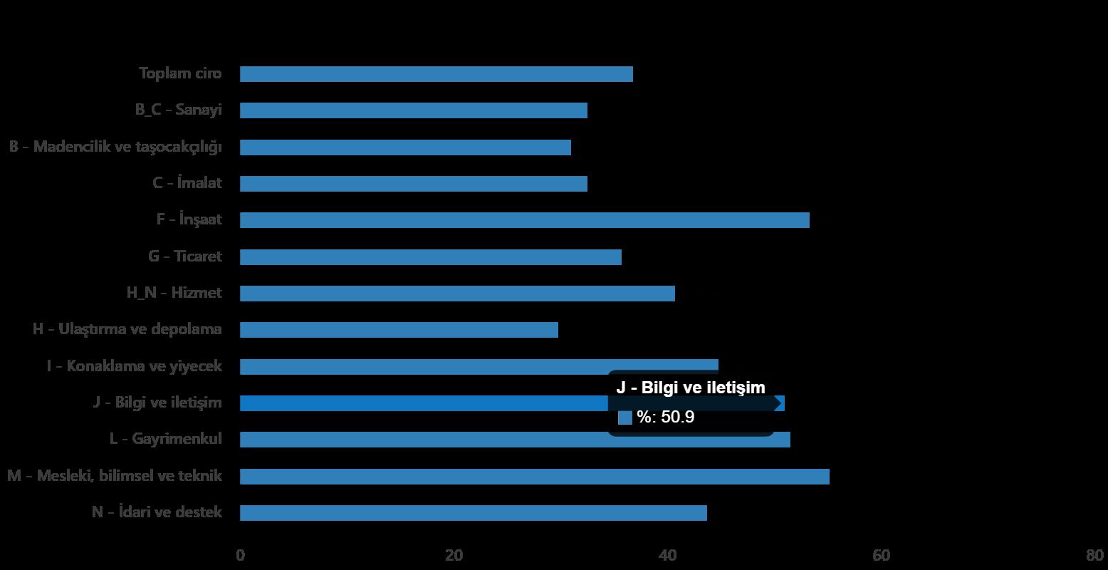 Toplam cironun alt ayrıntılarına bakıldığında; 2025 yılı Ağustos ayında yıllık sanayi dalı ciro endeksi %32,4 arttı, inşaat ciro endeksi %53,2 arttı, ticaret ciro endeksi %35,6 arttı, hizmet ciro endeksi %40,6 arttı.