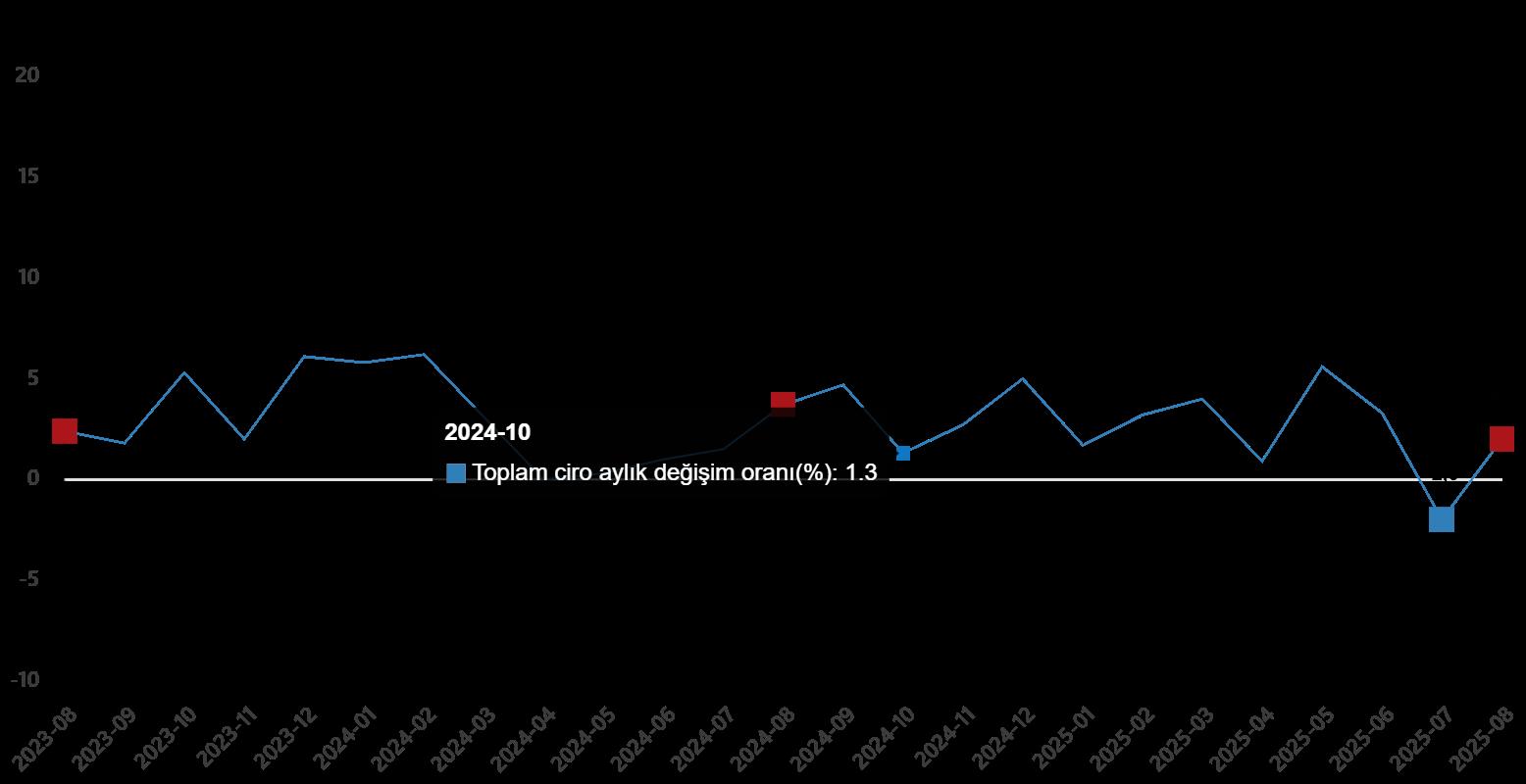 Toplam ciro aylık değişim oranı(%), Ağustos 2025