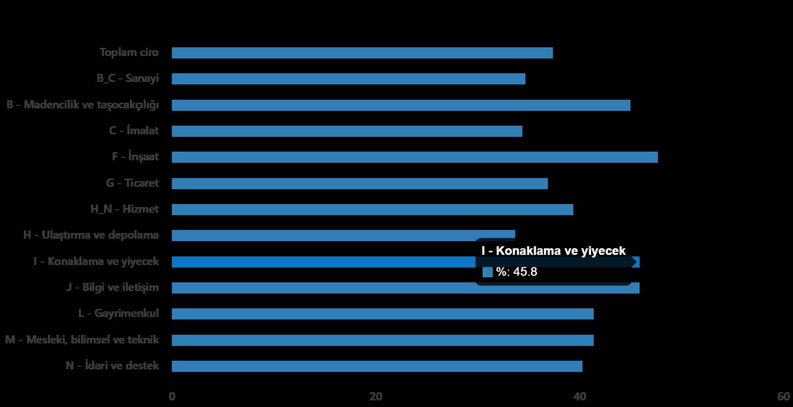 Toplam cironun alt ayrıntılarına bakıldığında; 2025 yılı Kasım ayında yıllık sanayi kesimi ciro endeksi %34,6 arttı, inşaat ciro endeksi %47,6 arttı, ticaret ciro endeksi %36,8 arttı, hizmet ciro endeksi %39,3 arttı.