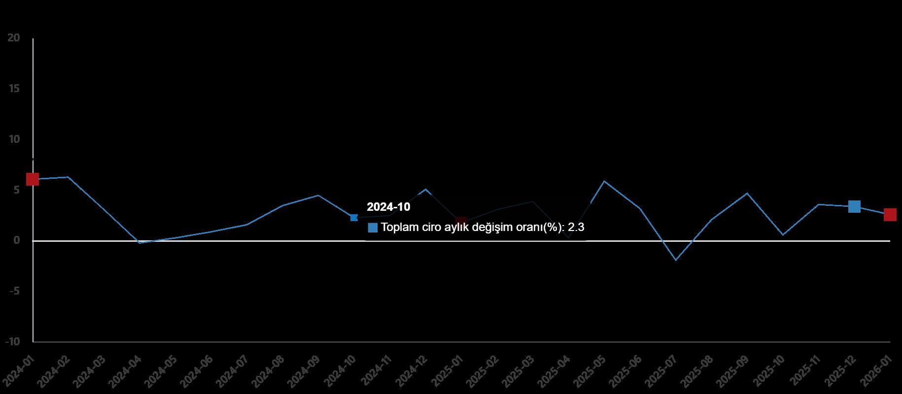 Toplam ciro aylık değişim oranı(%), Ocak 2026