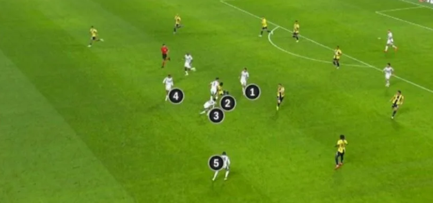 Bahattin Duran: Hareketin bütününü değerlendirmek lazım, fotoğrafına değil. Hocam bu pozisyon özelinde, yardımcı hakem yardım edemez. Hocam Tadic sol ayaklı bir oyuncu. Tadic’in buradan yaptığı korner vuruşu, topun kale çizgisini geçmemesini takip etmeli, dış bükey atıyor. Topun çizgiyi terk edip etmediğine bakmak zorunda yardımcı hakem. Yardımcı hakem için bu pozisyon kolay değil.