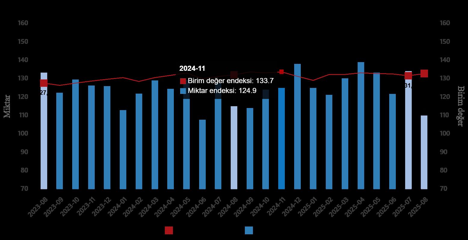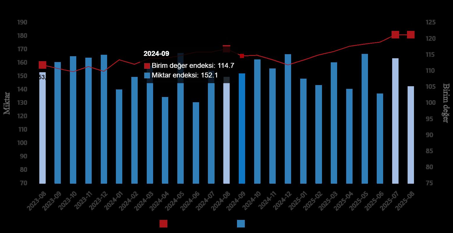 İhracat ünite bedel ve ölçü endeksleri, Ağustos 2025