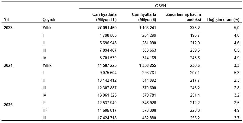 GSYH sonuçları, III. Çeyrek: Temmuz – Eylül, 2025