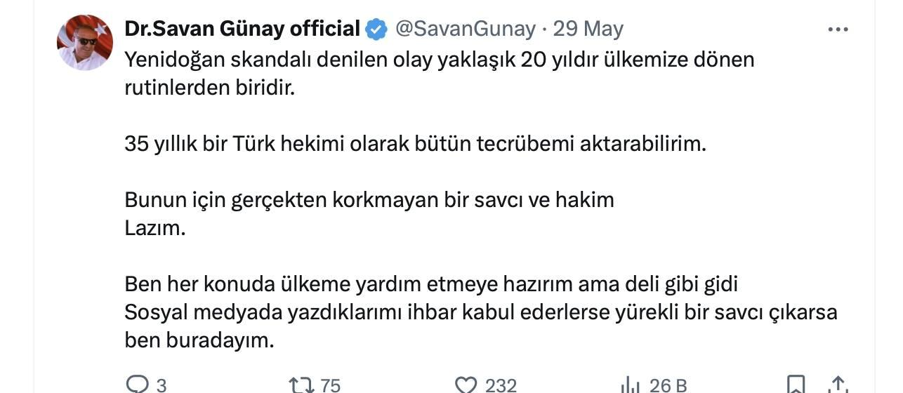 Dr. Günay, son dönemde sosyal medya üzerinden yaptığı açıklamalarda dikkat çeken iddialarda bulunmuştu. Paylaşımlarından birinde şu ifadeleri kullanmıştı: