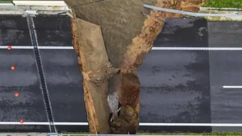 Visiting the scene on Thursday, Infrastructure Minister Miguel Pinto Luz said it would take weeks for the road to be repaired.