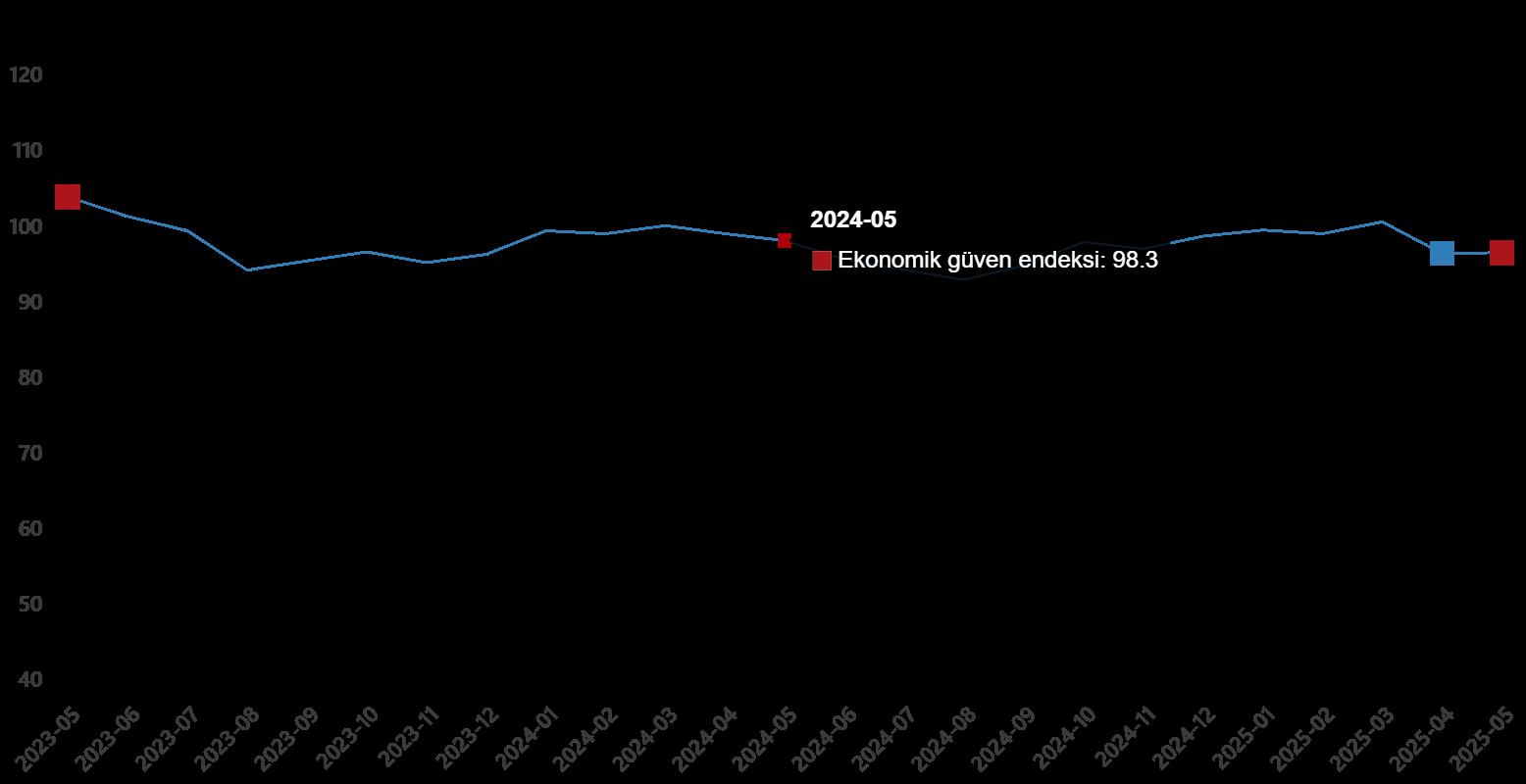 Ekonomik itimat endeksi, inanç endeksleri ve değişim oranları, Mayıs 2025
