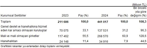 Etraf müdafaa harcamaları 2024 yılında bir evvelki yıla nazaran %108,3 artarak toplam 441 milyar TL olarak gerçekleşti. Etraf müdafaa harcamalarının %60,9’u mali ve mali olmayan şirketler, %31,2’si genel devlet ve hanehalkına hizmet eden kar maksadı olmayan kuruluşlar ve %7,9’u ise hanehalkları tarafından yapıldı.