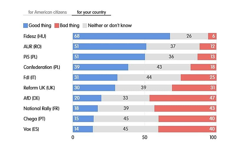 They are also on the same wavelength when a similar question is asked to their local parties, showing the highest Trump approval rates in Europe, particularly among far-right parties across the continent.