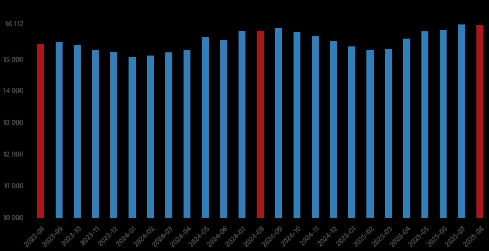 Sanayi, inşaat ve ticaret-hizmet kesimleri toplamında fiyatlı çalışan sayısı 2025 Ağustos ayında bir evvelki yılın birebir ayına nazaran %1,2 arttı. Fiyatlı çalışan sayısı bir evvelki yılın birebir ayında 15 milyon 904 bin 602 kişi iken, 2025 yılı Ağustos ayında 16 milyon 89 bin 450 kişi oldu.