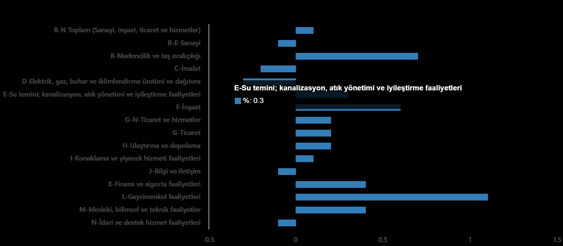 | E-Su temini; kanalizasyon, atık idaresi ve uygunlaştırma faaliyetleri | 64 357 | 66 665 | -2 308 | -3,5 |