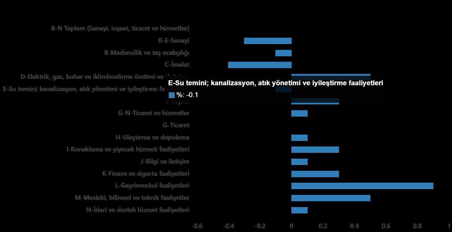 | E-Su temini; kanalizasyon, atık idaresi ve düzgünleştirme faaliyetleri | 64 426 | 66 698 | -2 272 | -3,4 |