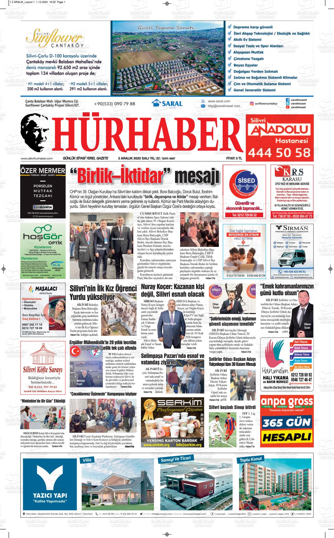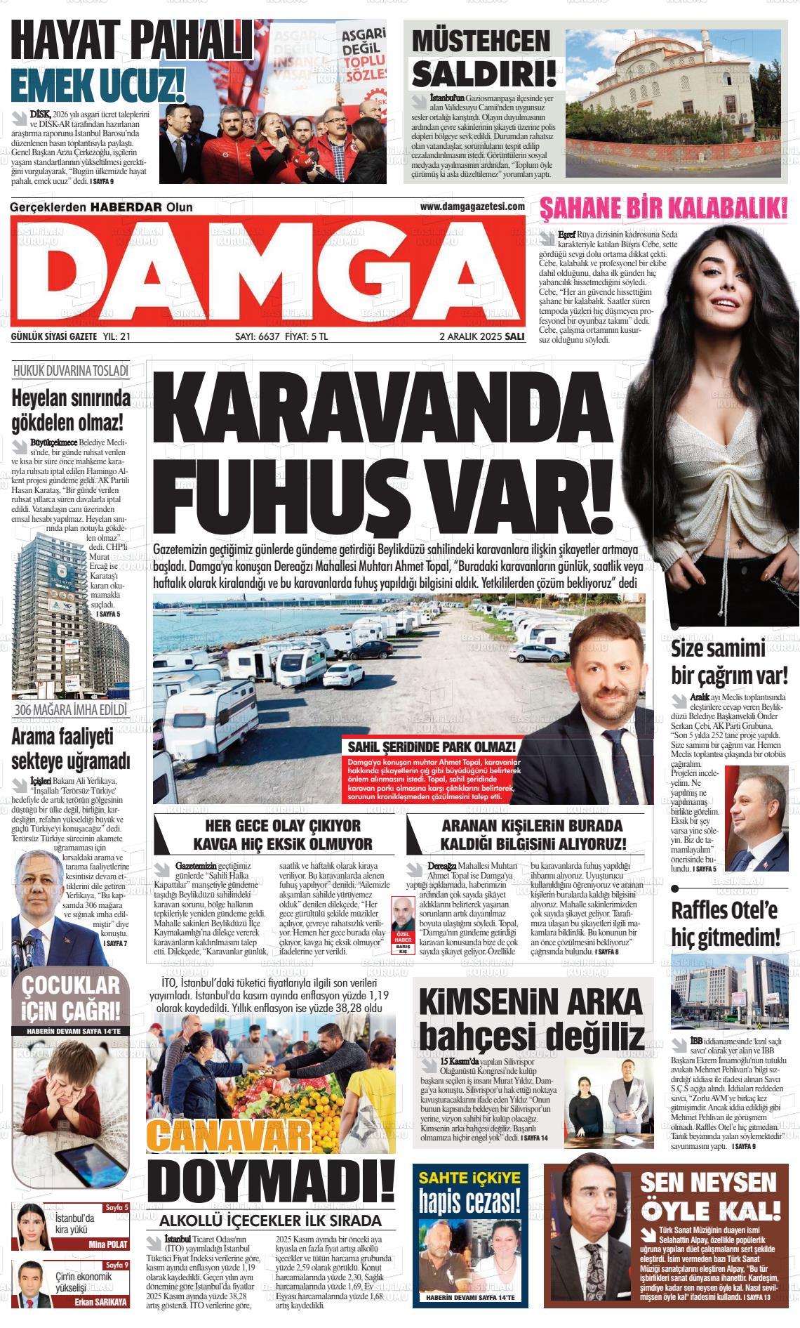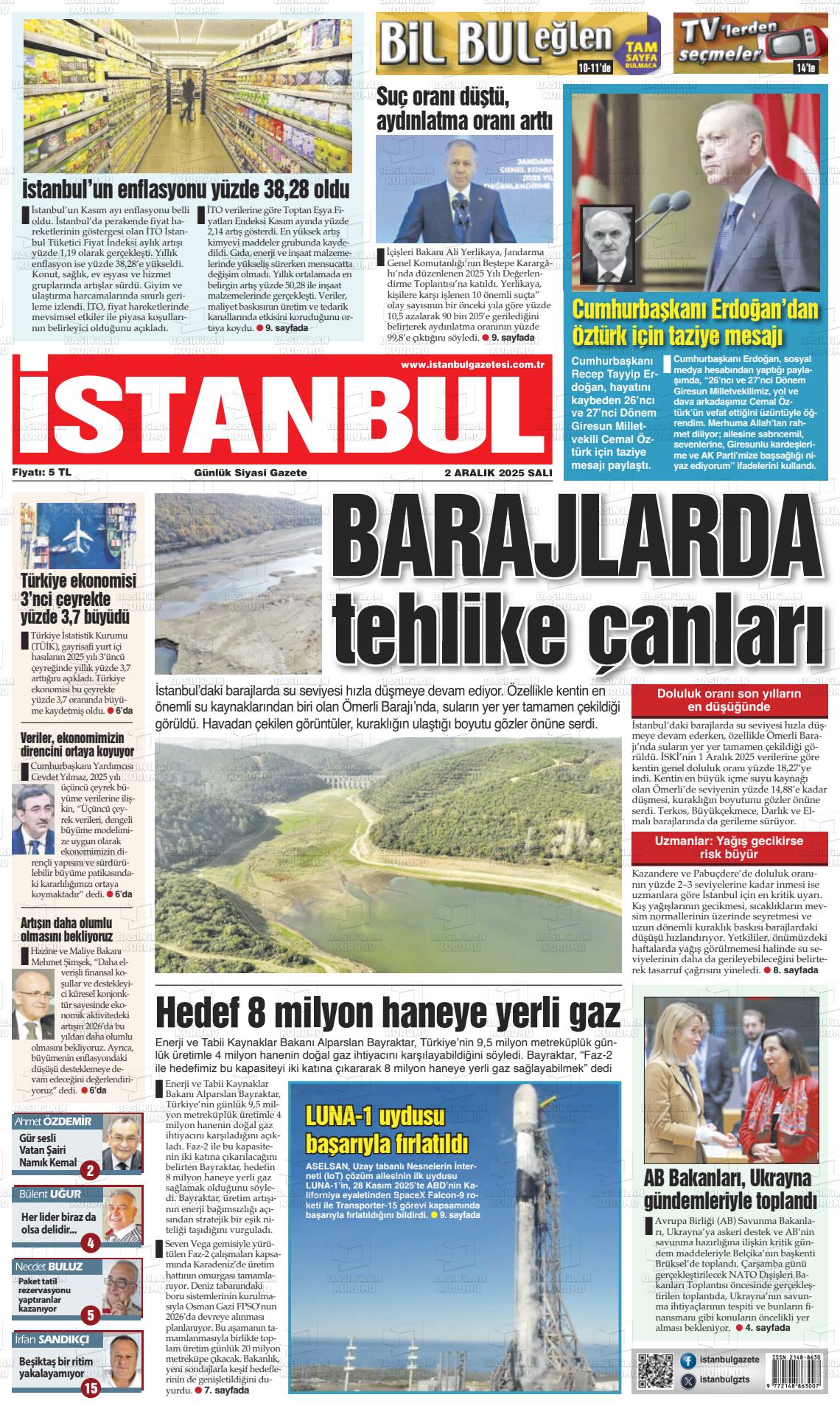 İstanbul Yerel Gazeteleri 02 Aralık 2025, Salı Günü Manşeti