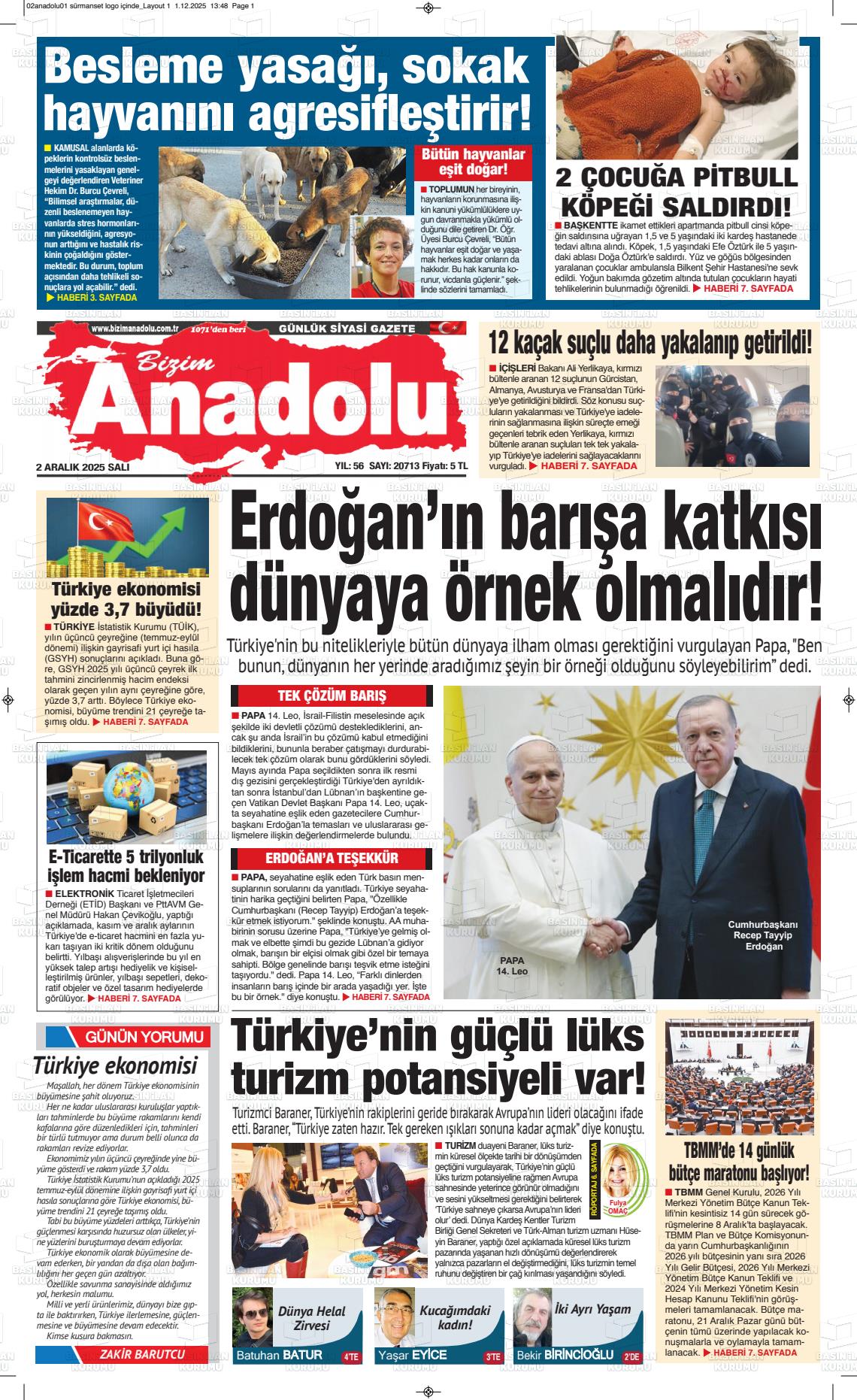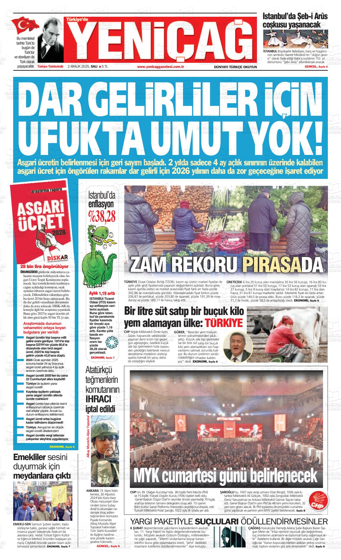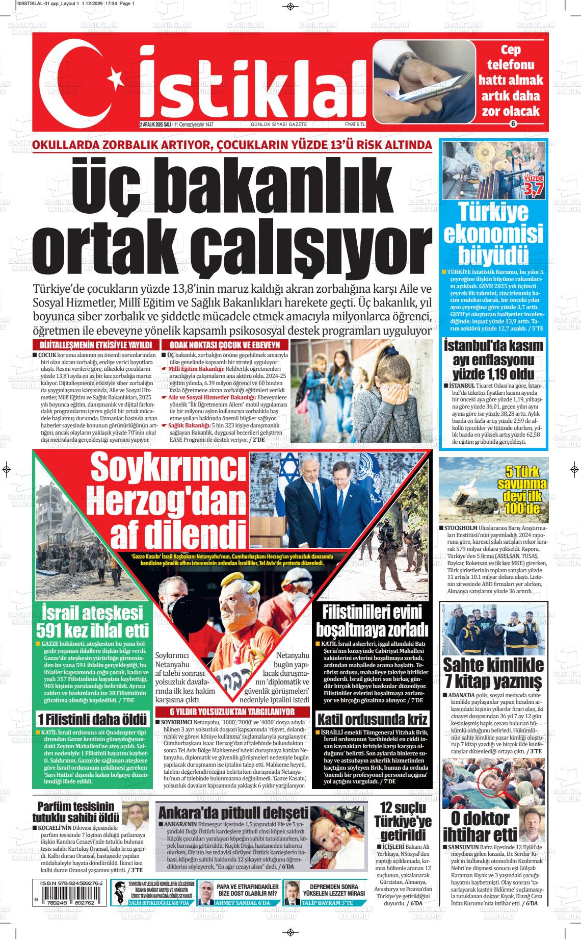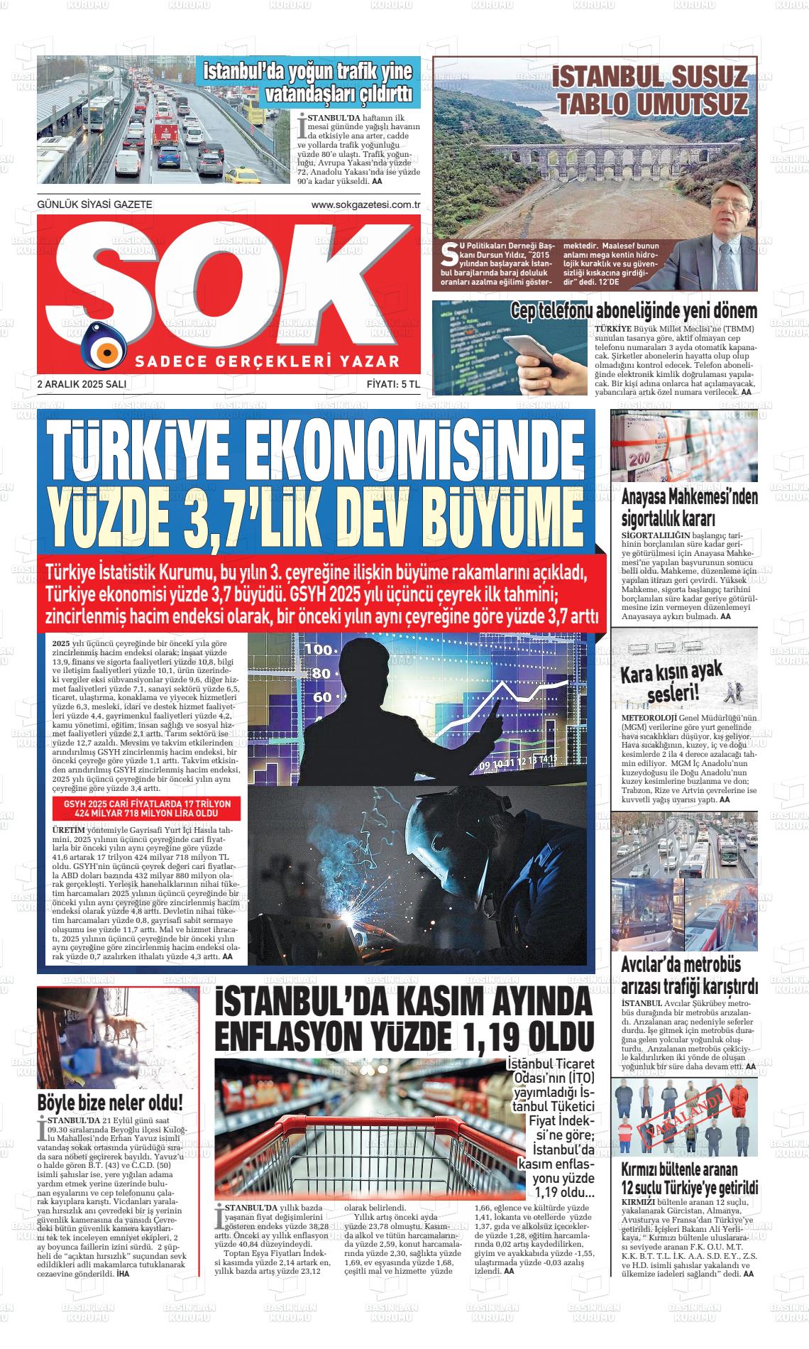 İstanbul Yerel Gazeteleri 02 Aralık 2025, Salı Günü Manşeti
