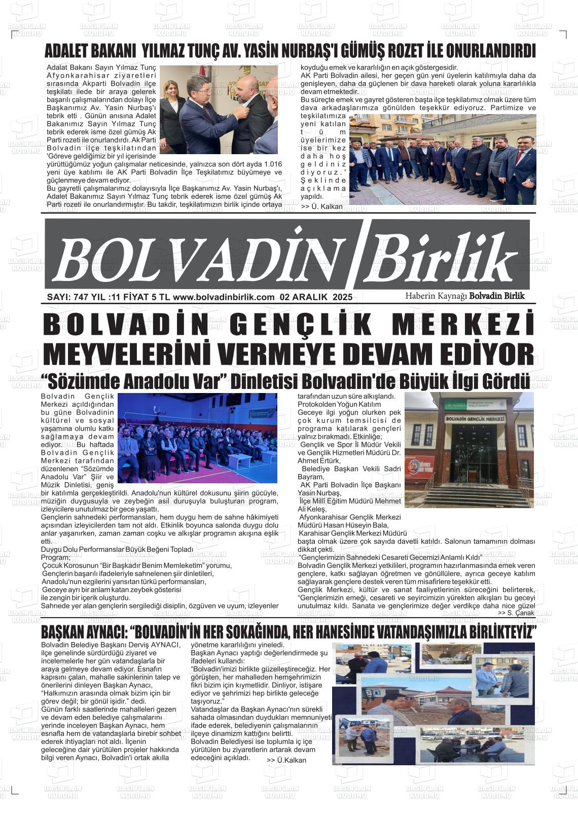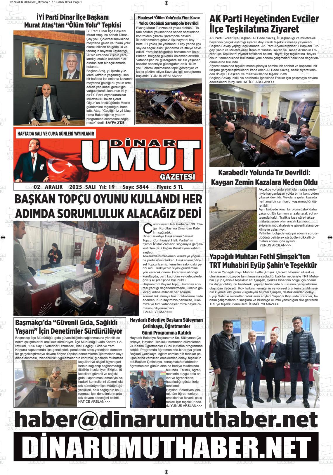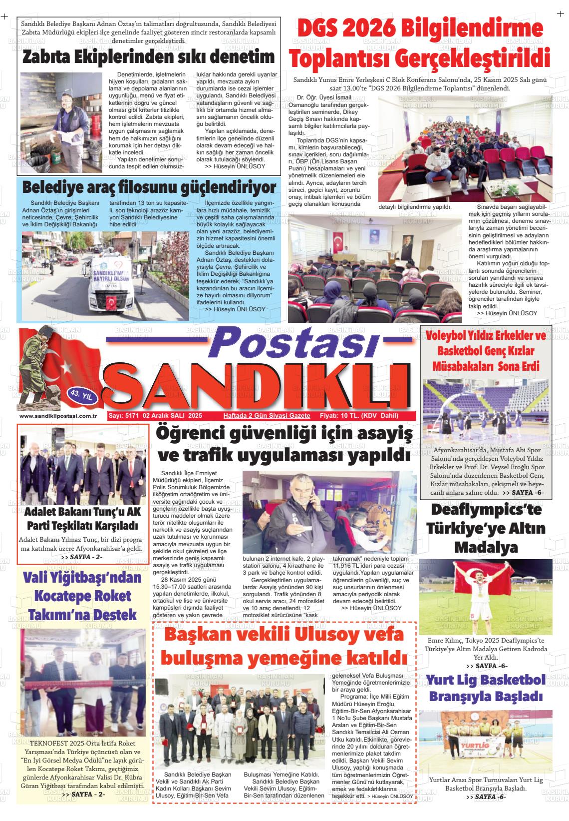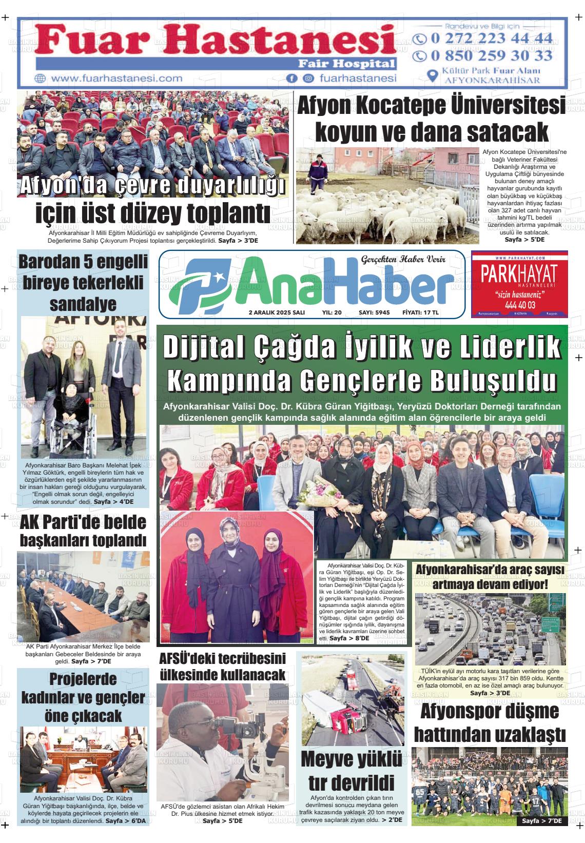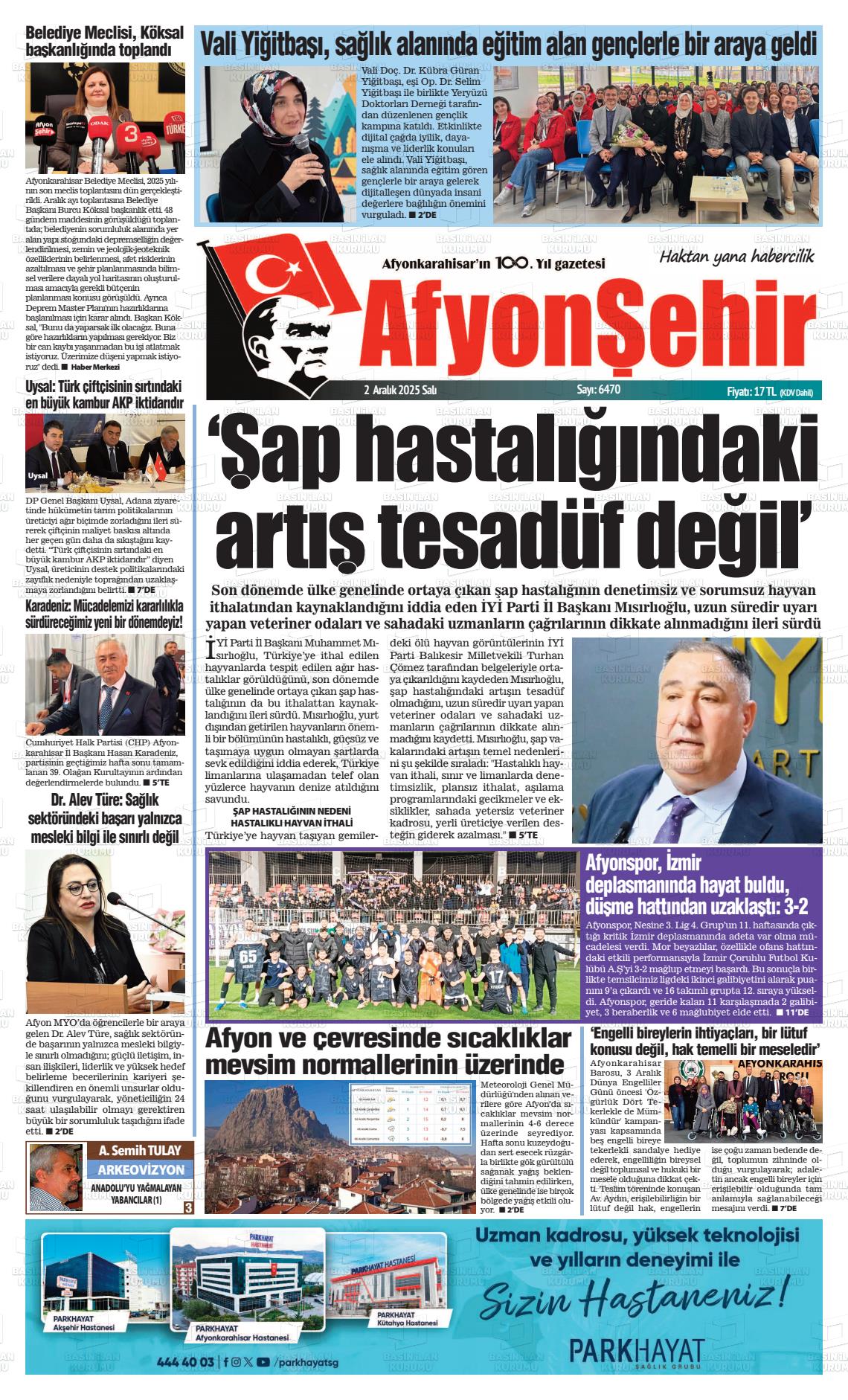 Afyonkarahİsar Yerel Gazeteleri 02 Aralık 2025, Salı Günü Manşeti