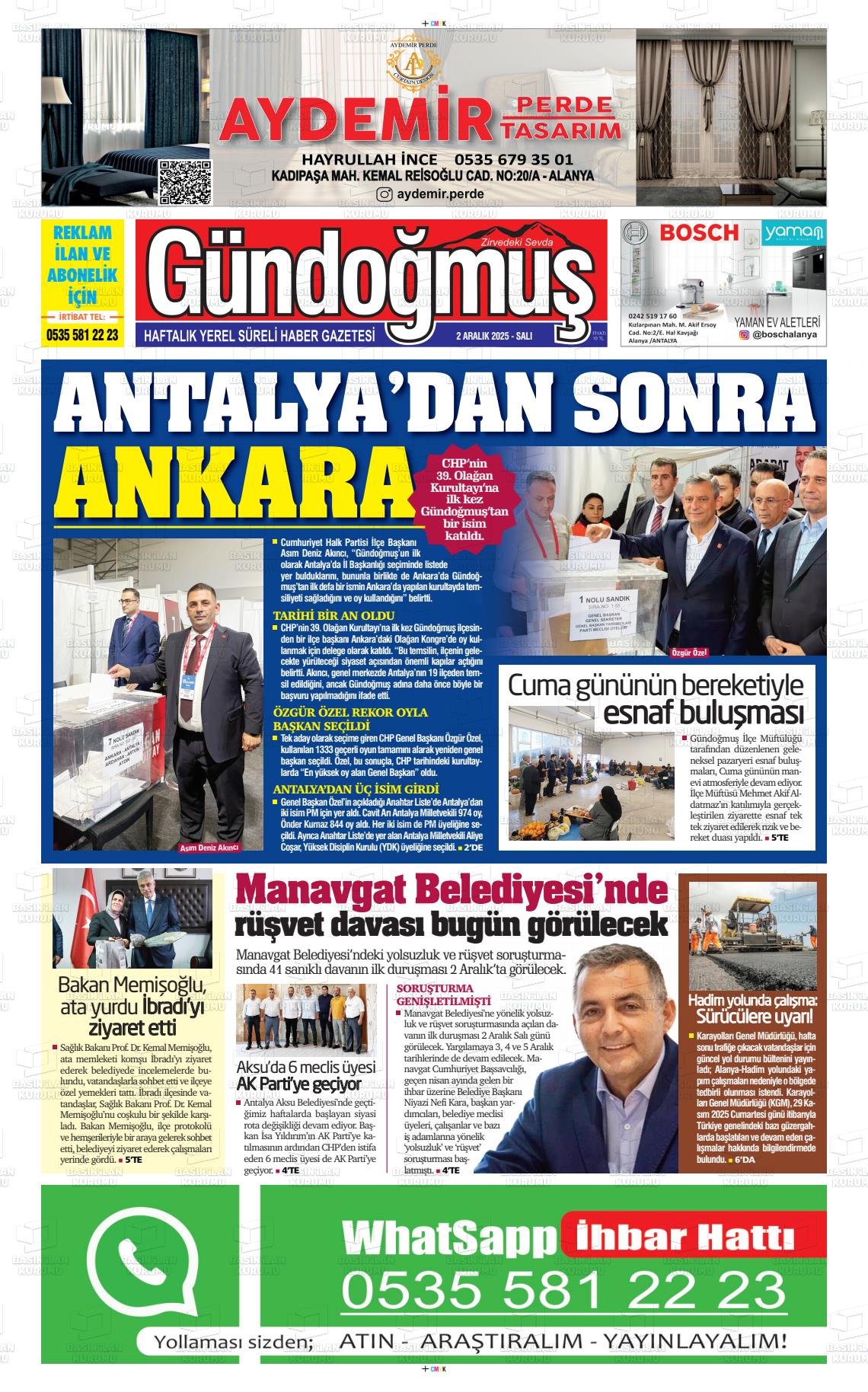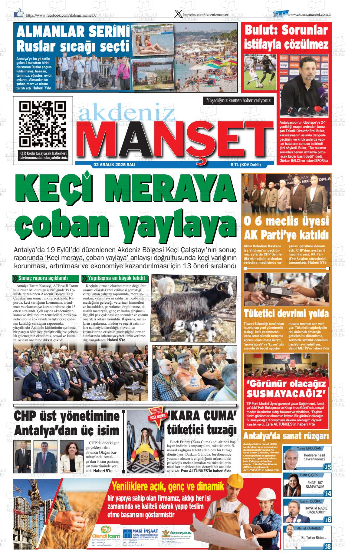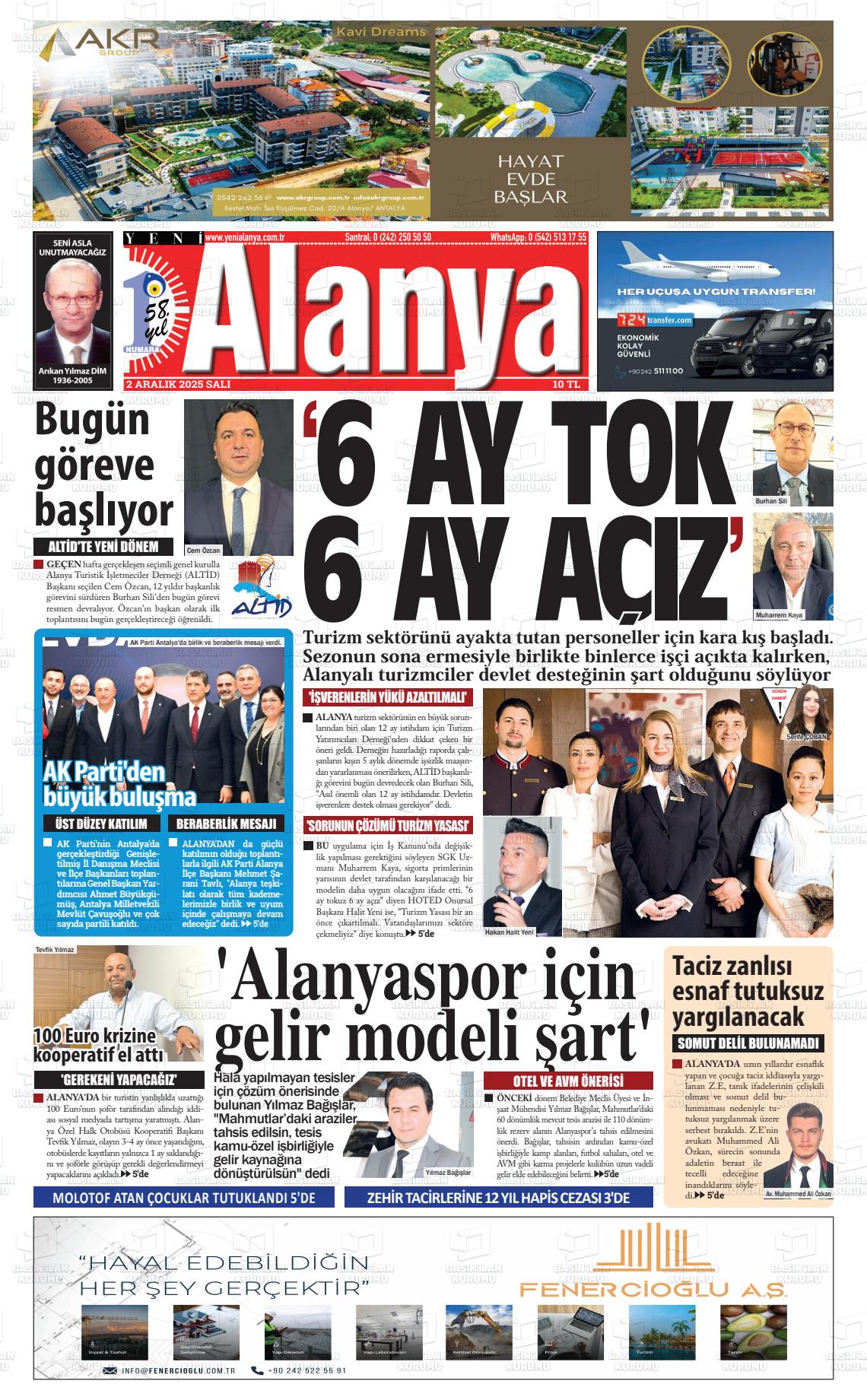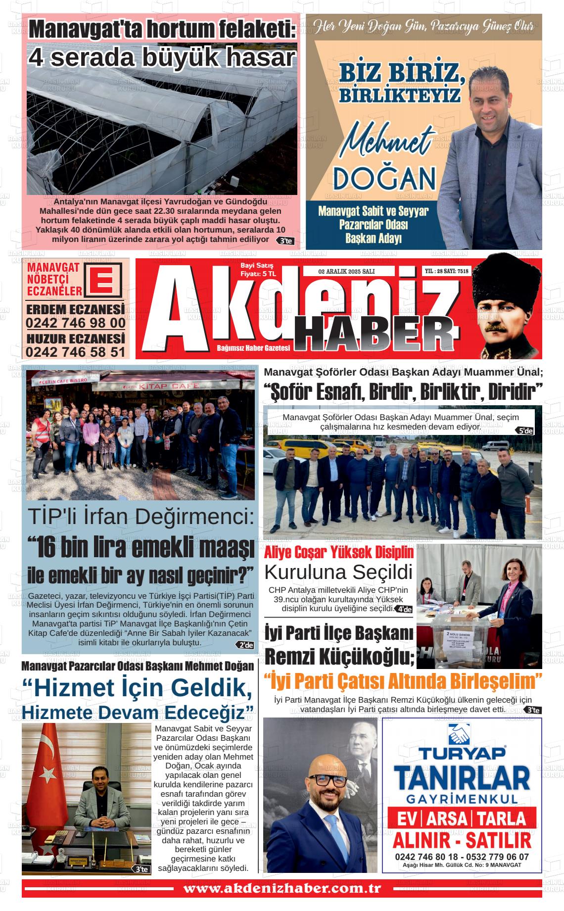 Antalya Yerel Gazeteleri 02 Aralık 2025, Salı Günü Manşeti