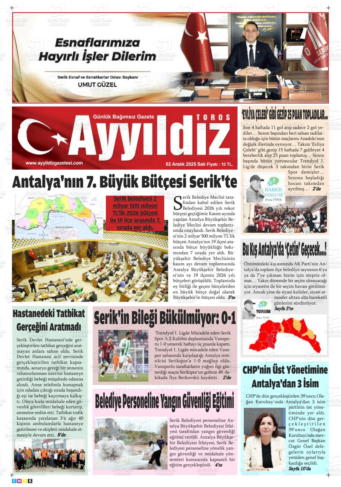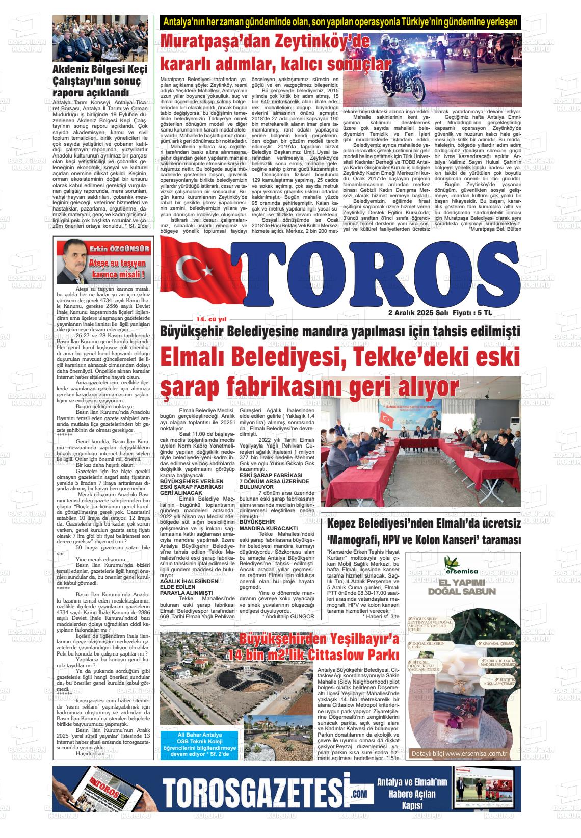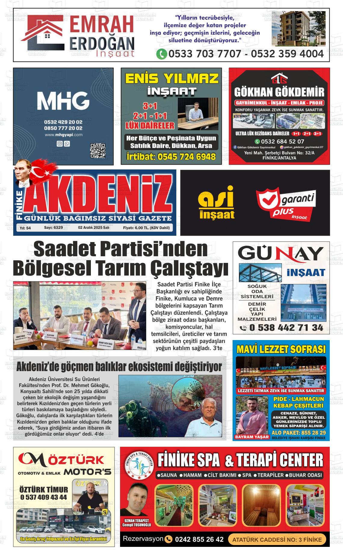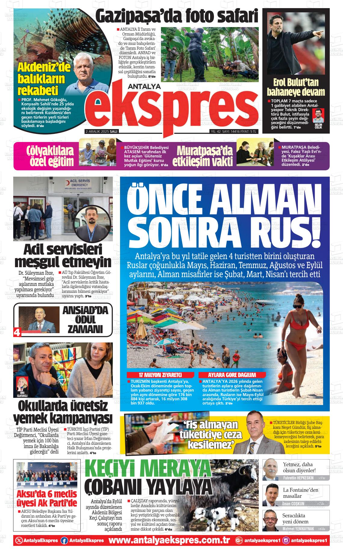 Antalya Yerel Gazeteleri 02 Aralık 2025, Salı Günü Manşeti