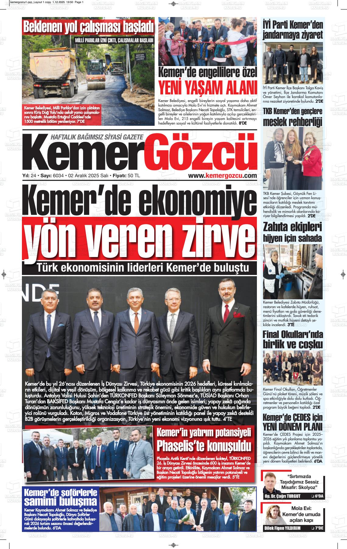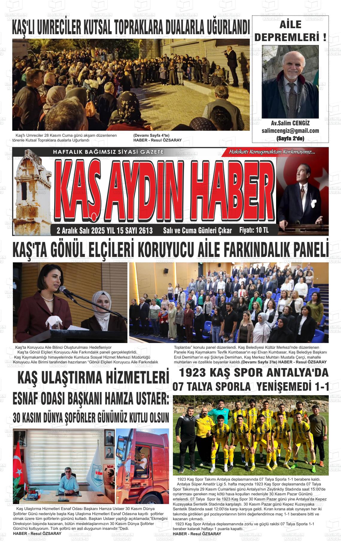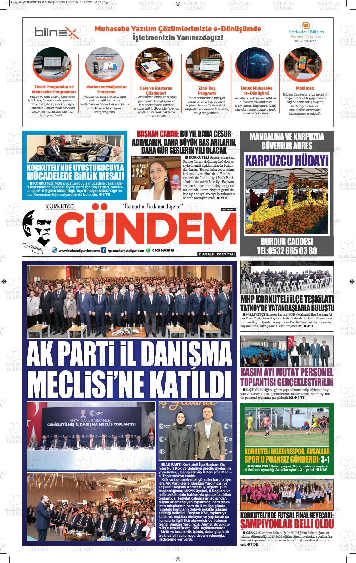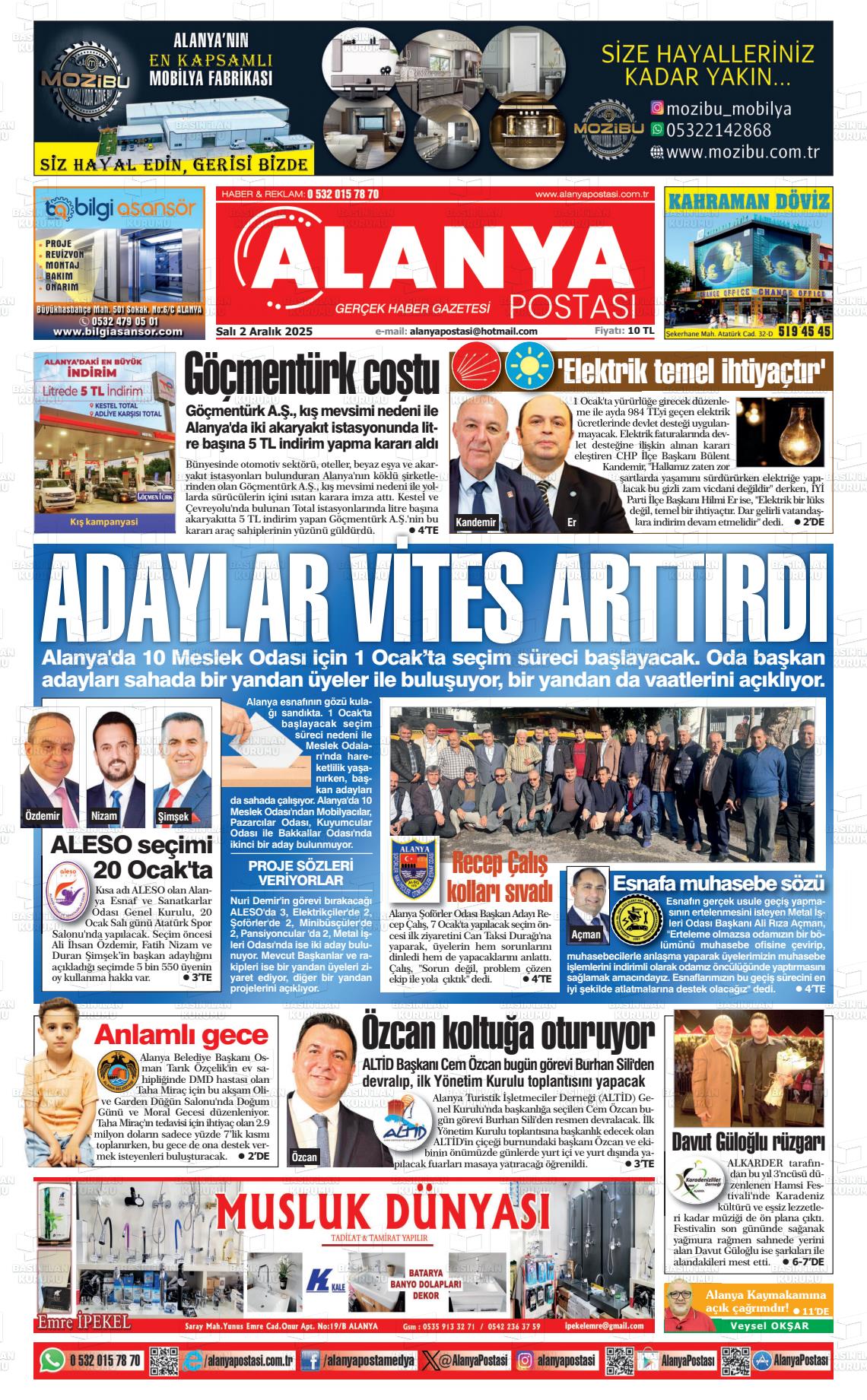 Antalya Yerel Gazeteleri 02 Aralık 2025, Salı Günü Manşeti