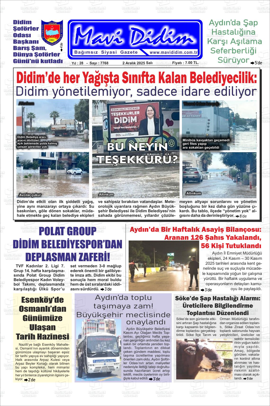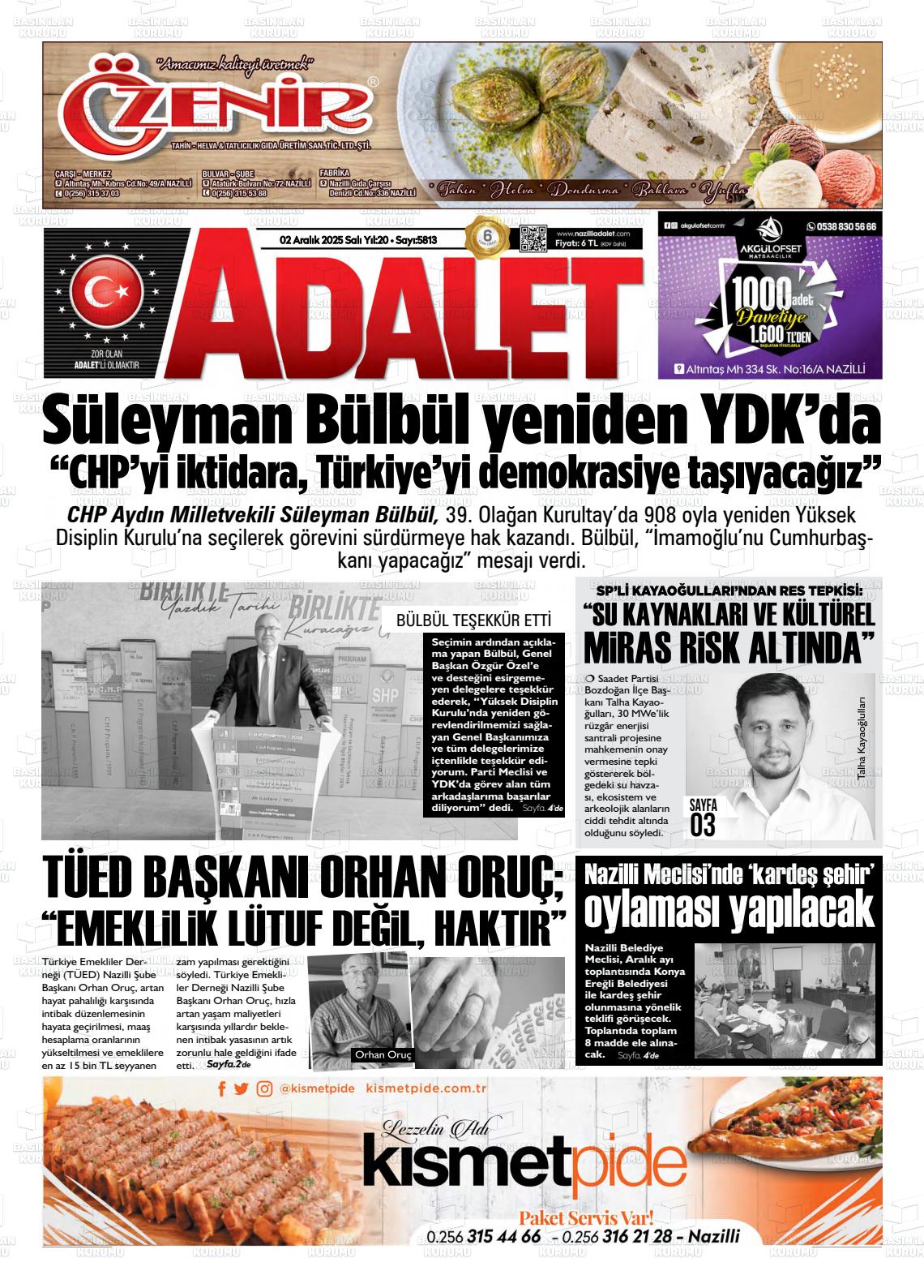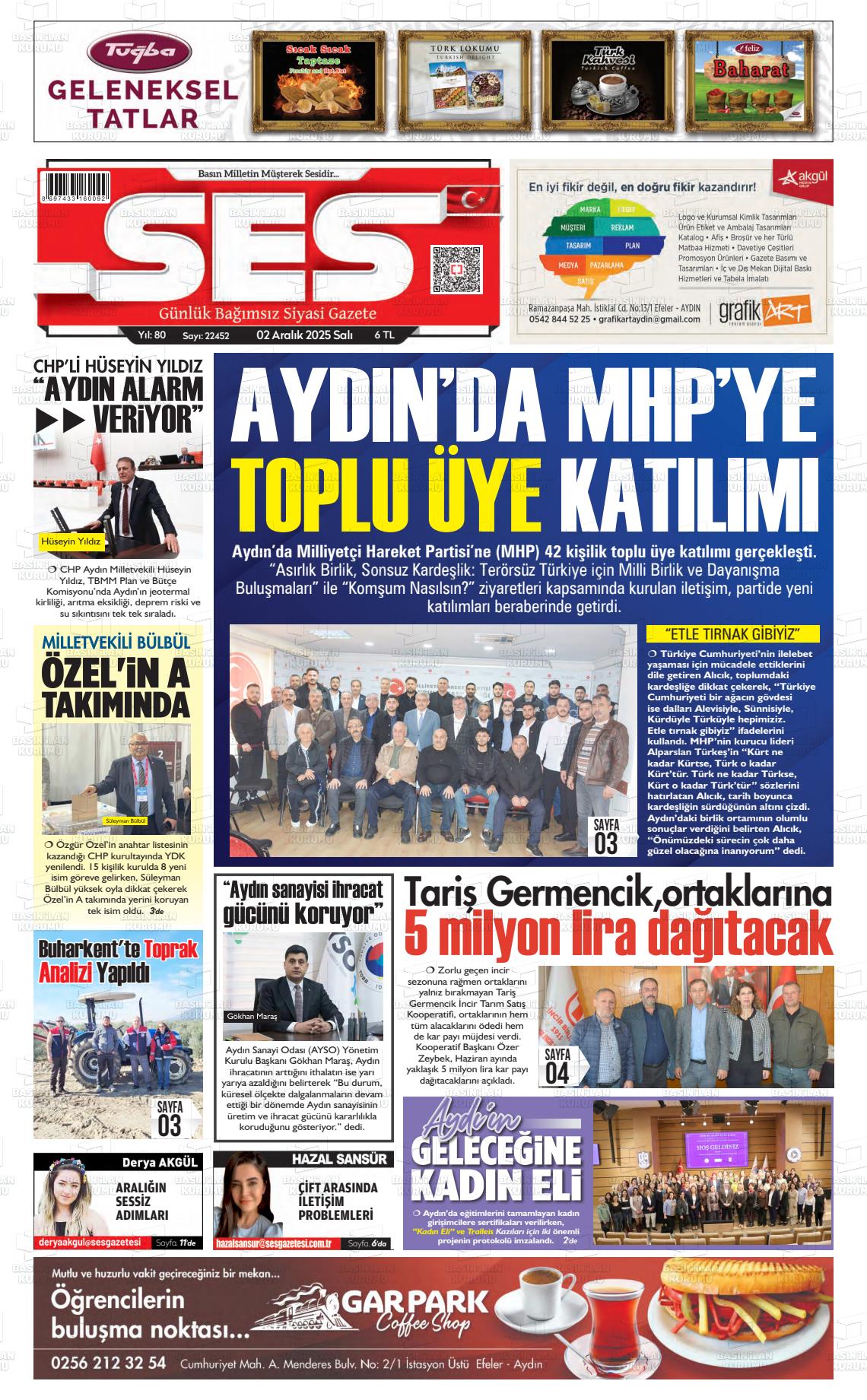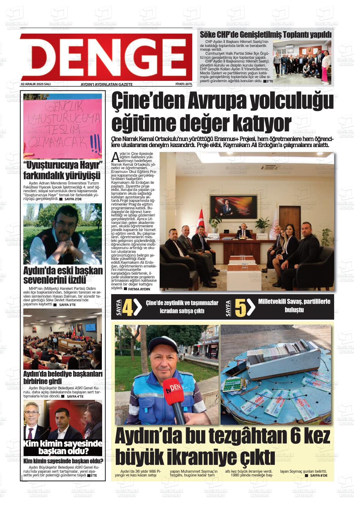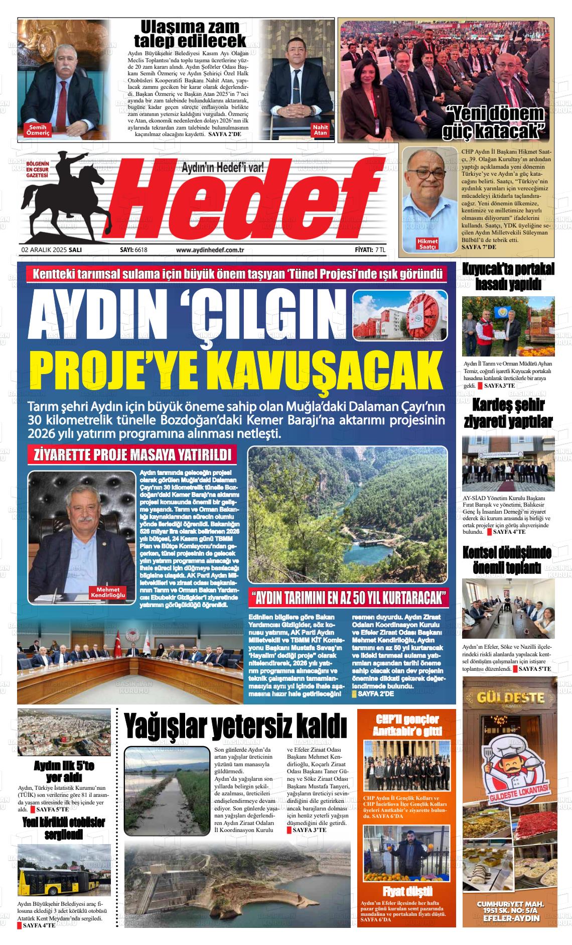 Aydın Yerel Gazeteleri 02 Aralık 2025, Salı Günü Manşeti