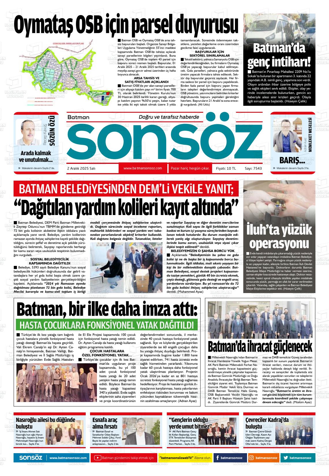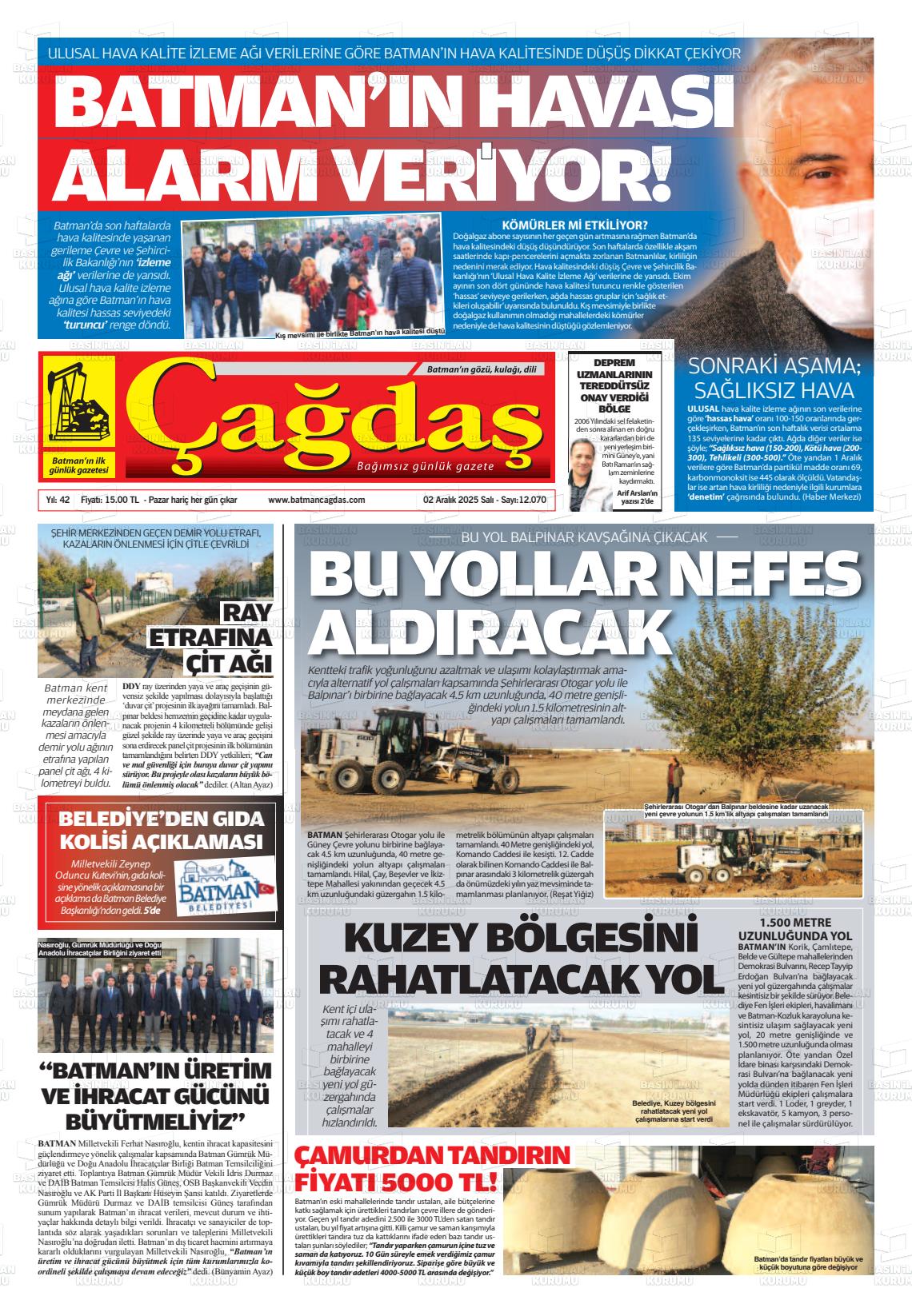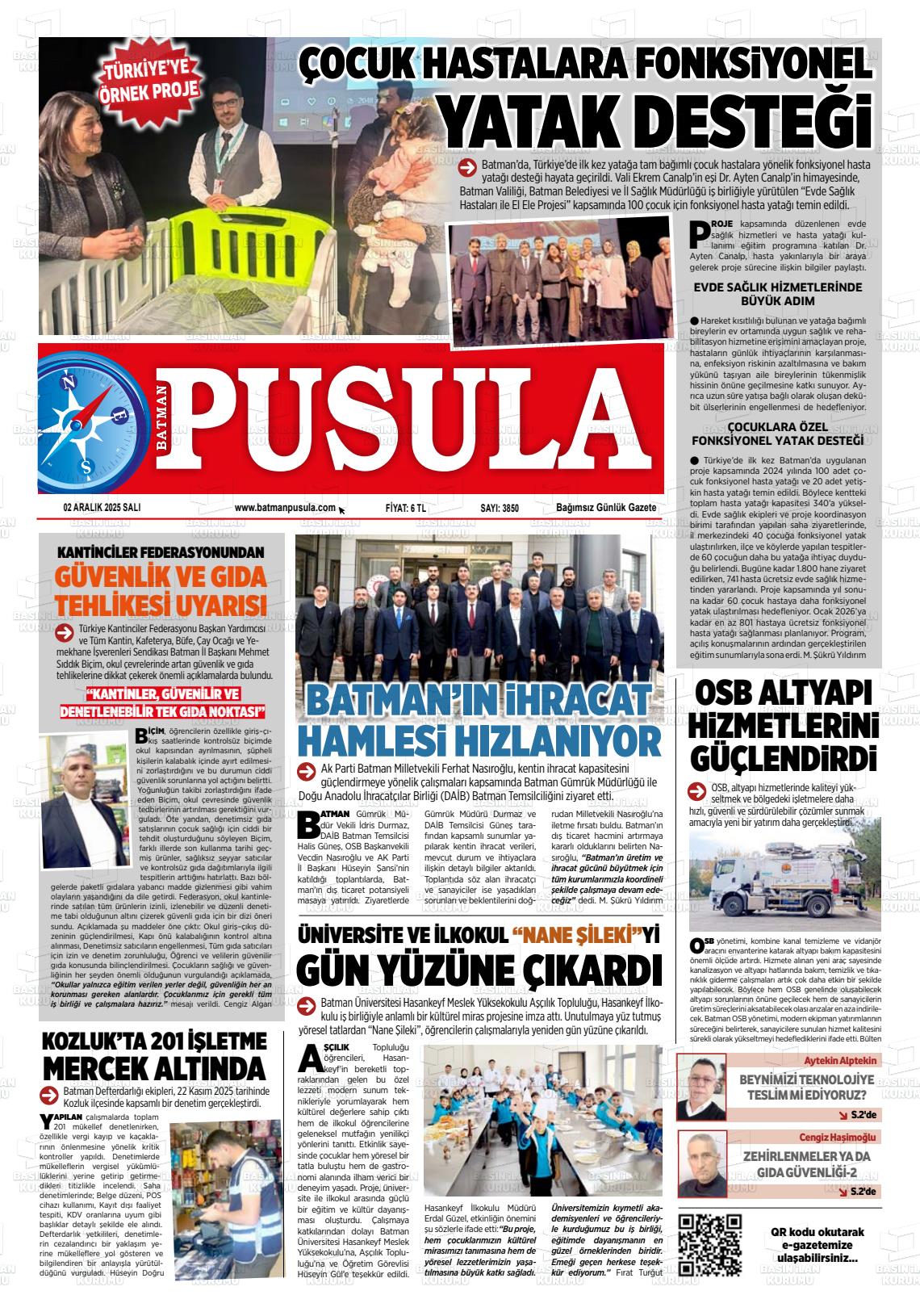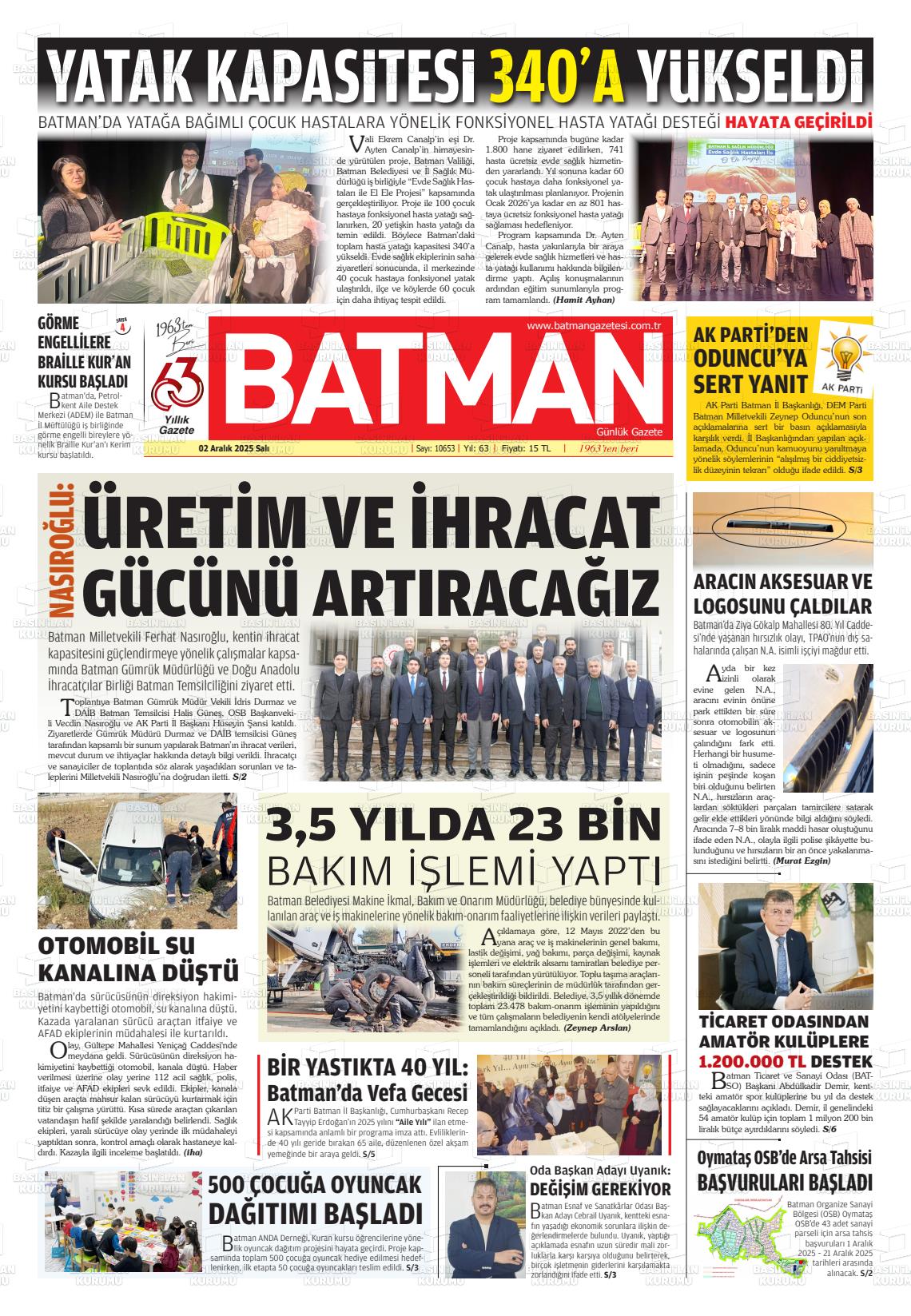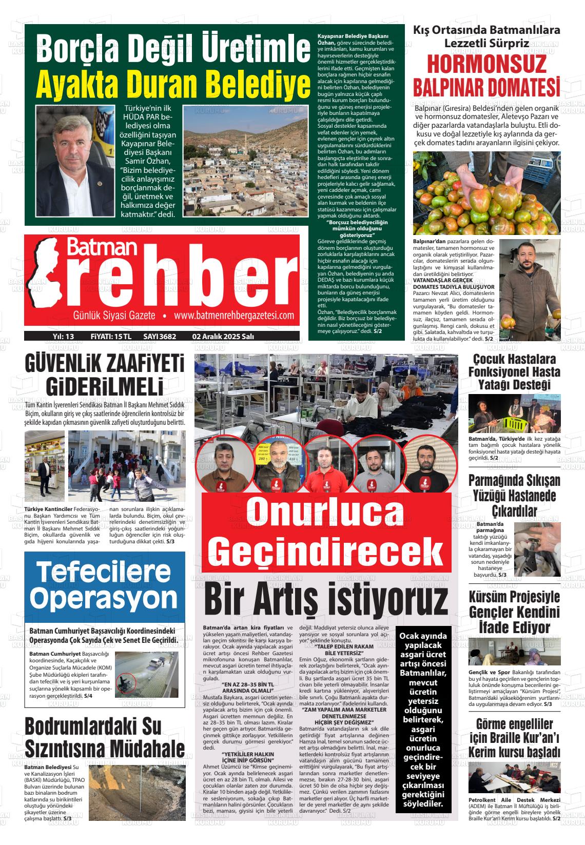 Batman Yerel Gazeteleri 02 Aralık 2025, Salı Günü Manşeti