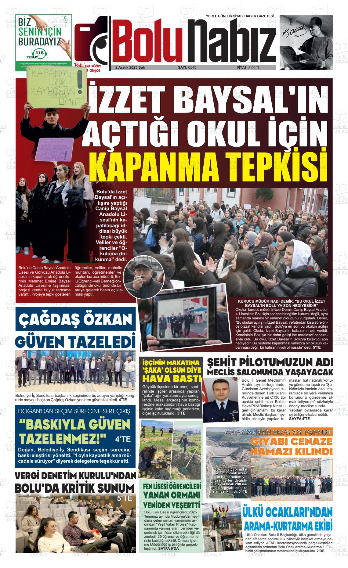 Bolu Yerel Gazeteleri 02 Aralık 2025, Salı Günü Manşeti