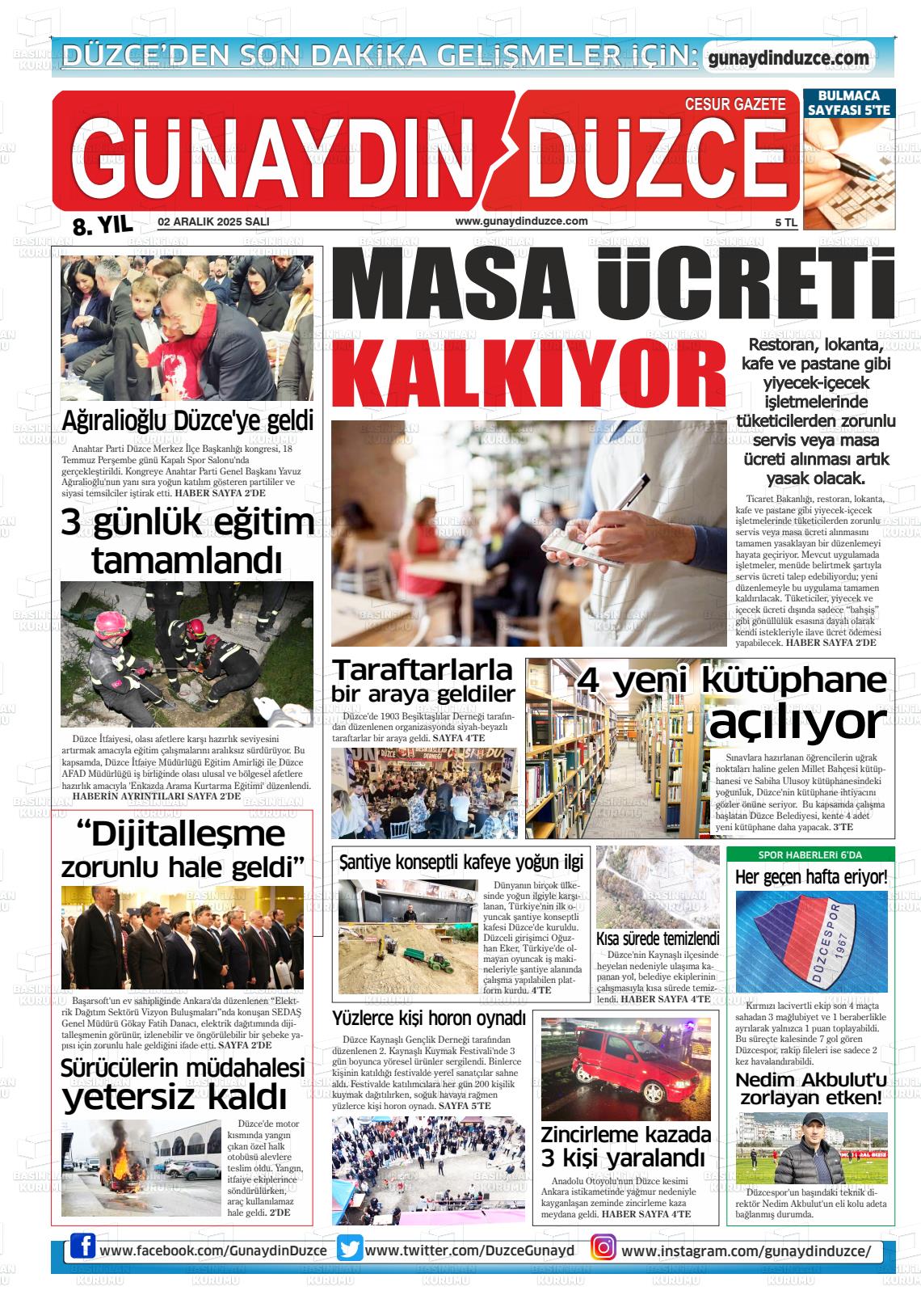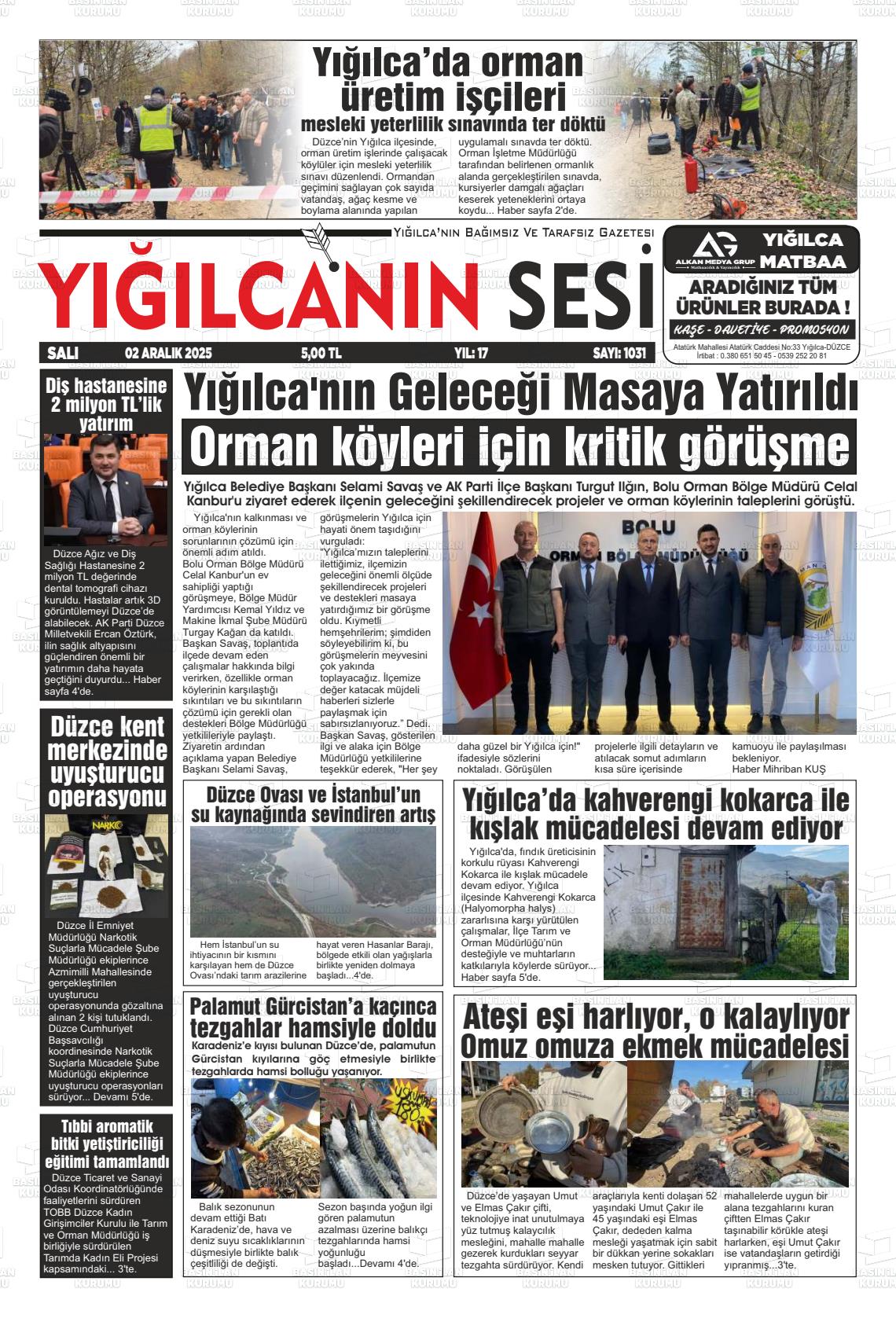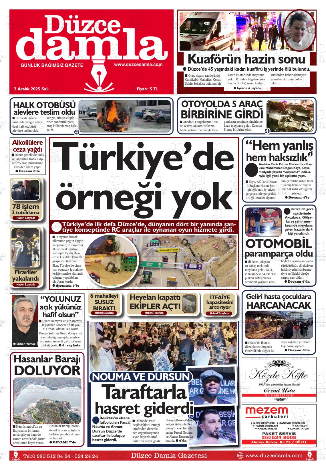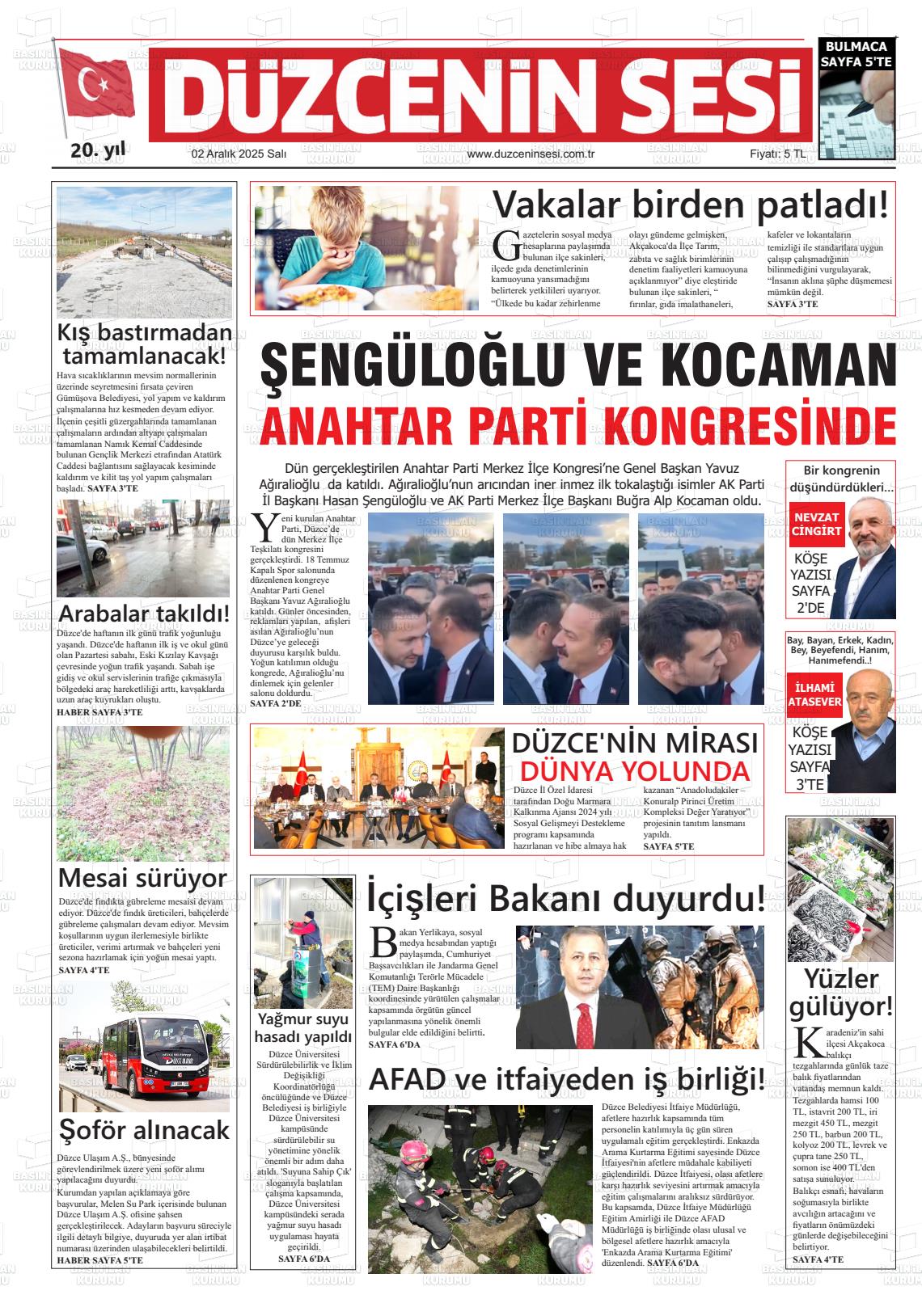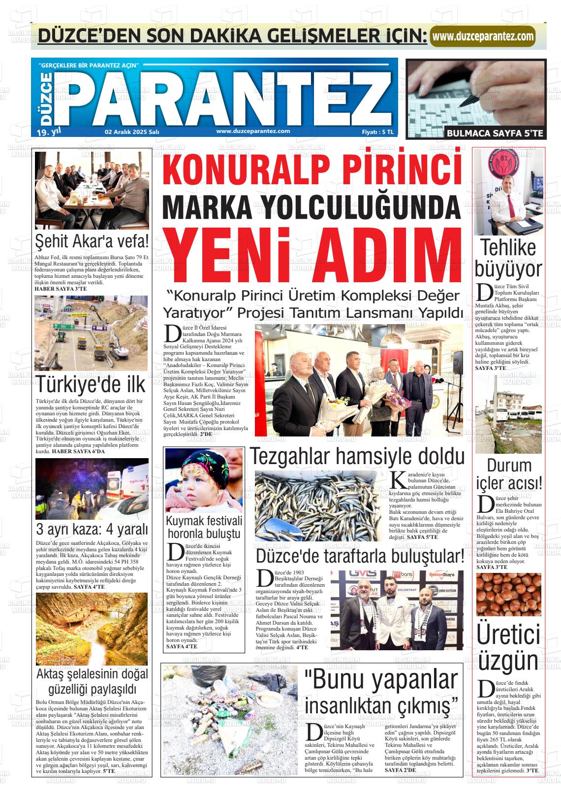Düzce Yerel Gazeteleri 02 Aralık 2025, Salı Günü Manşeti