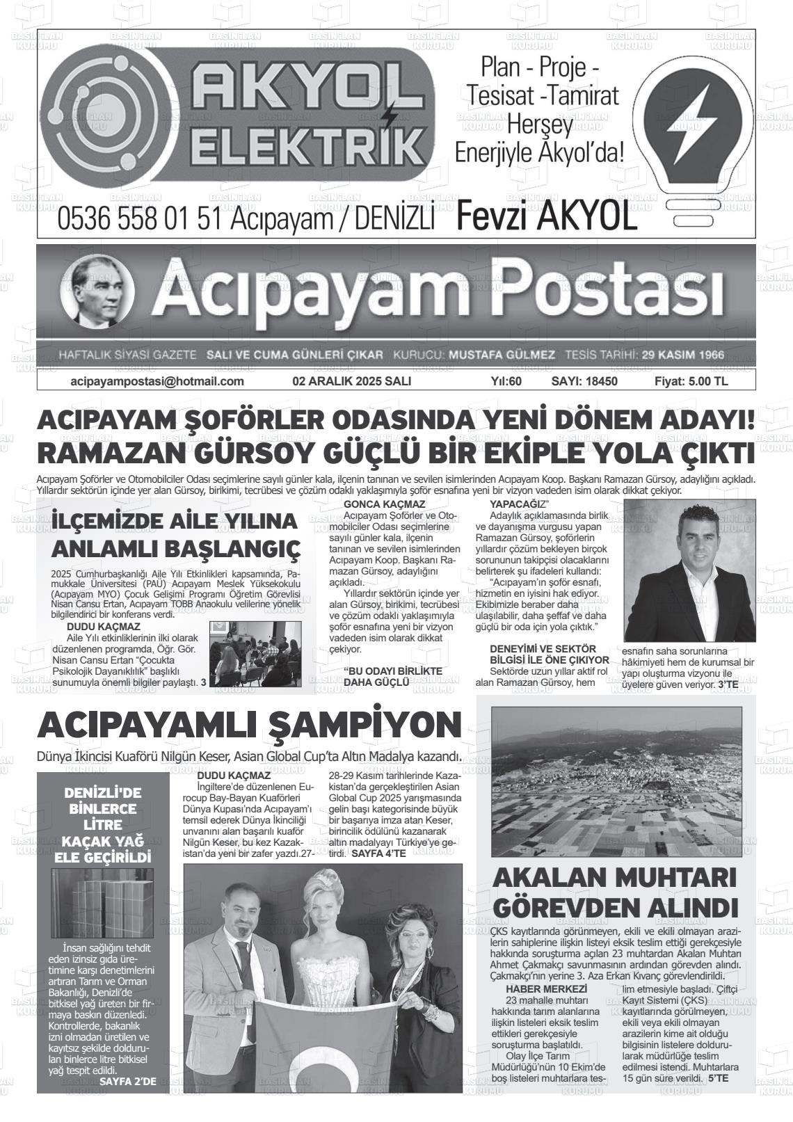 Denİzlİ Yerel Gazeteleri 02 Aralık 2025, Salı Günü Manşeti