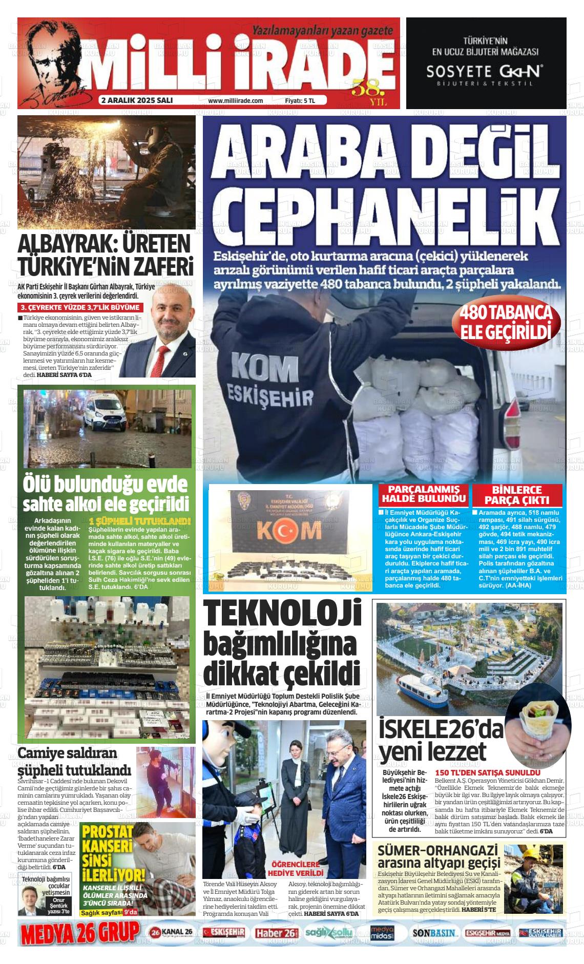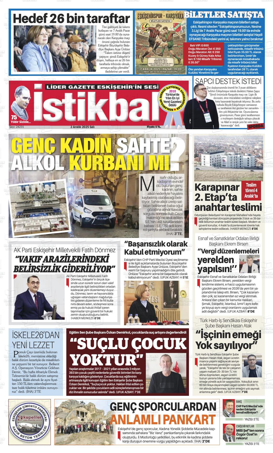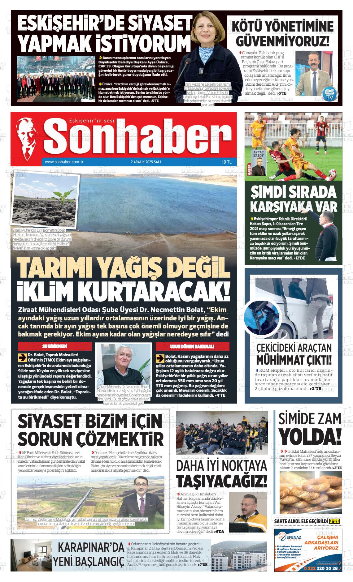 Eskİşehİr Yerel Gazeteleri 02 Aralık 2025, Salı Günü Manşeti