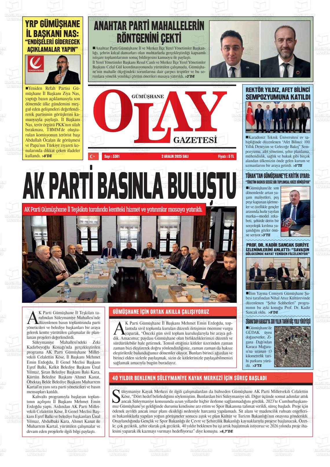 Gümüşhane Yerel Gazeteleri 02 Aralık 2025, Salı Günü Manşeti