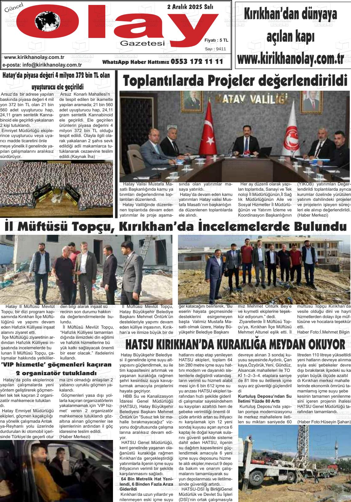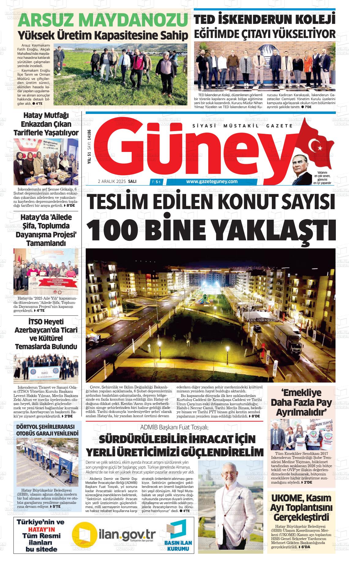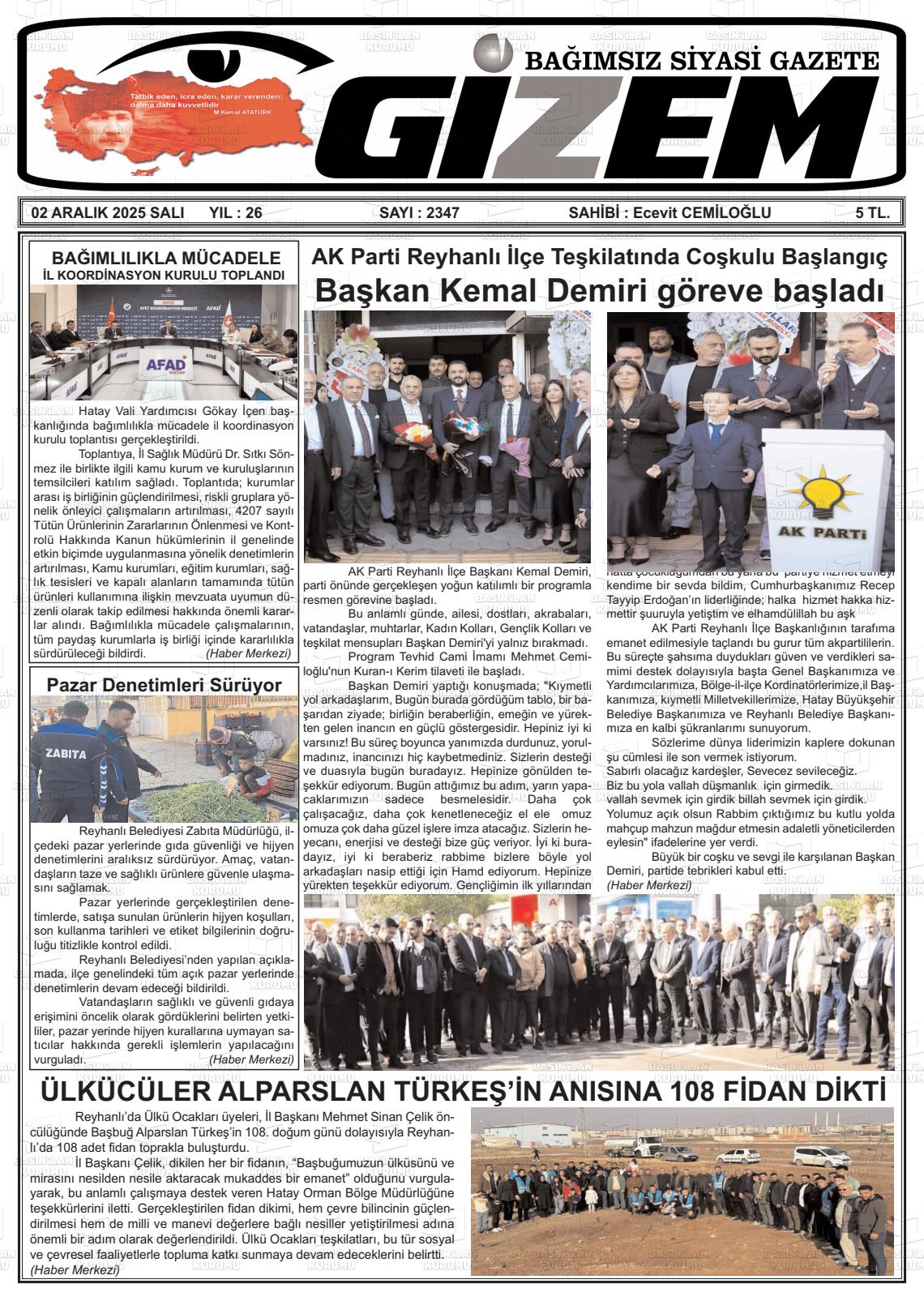 Hatay Yerel Gazeteleri 02 Aralık 2025, Salı Günü Manşeti