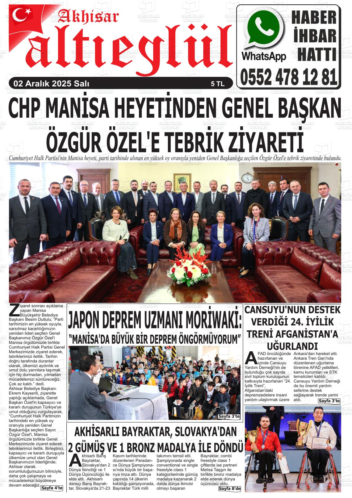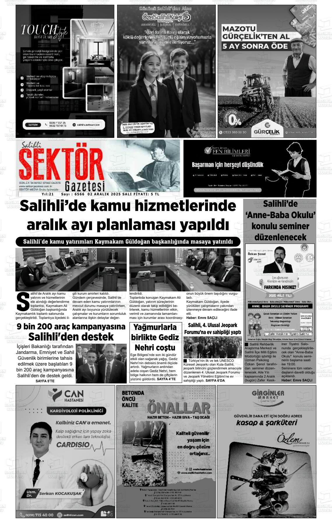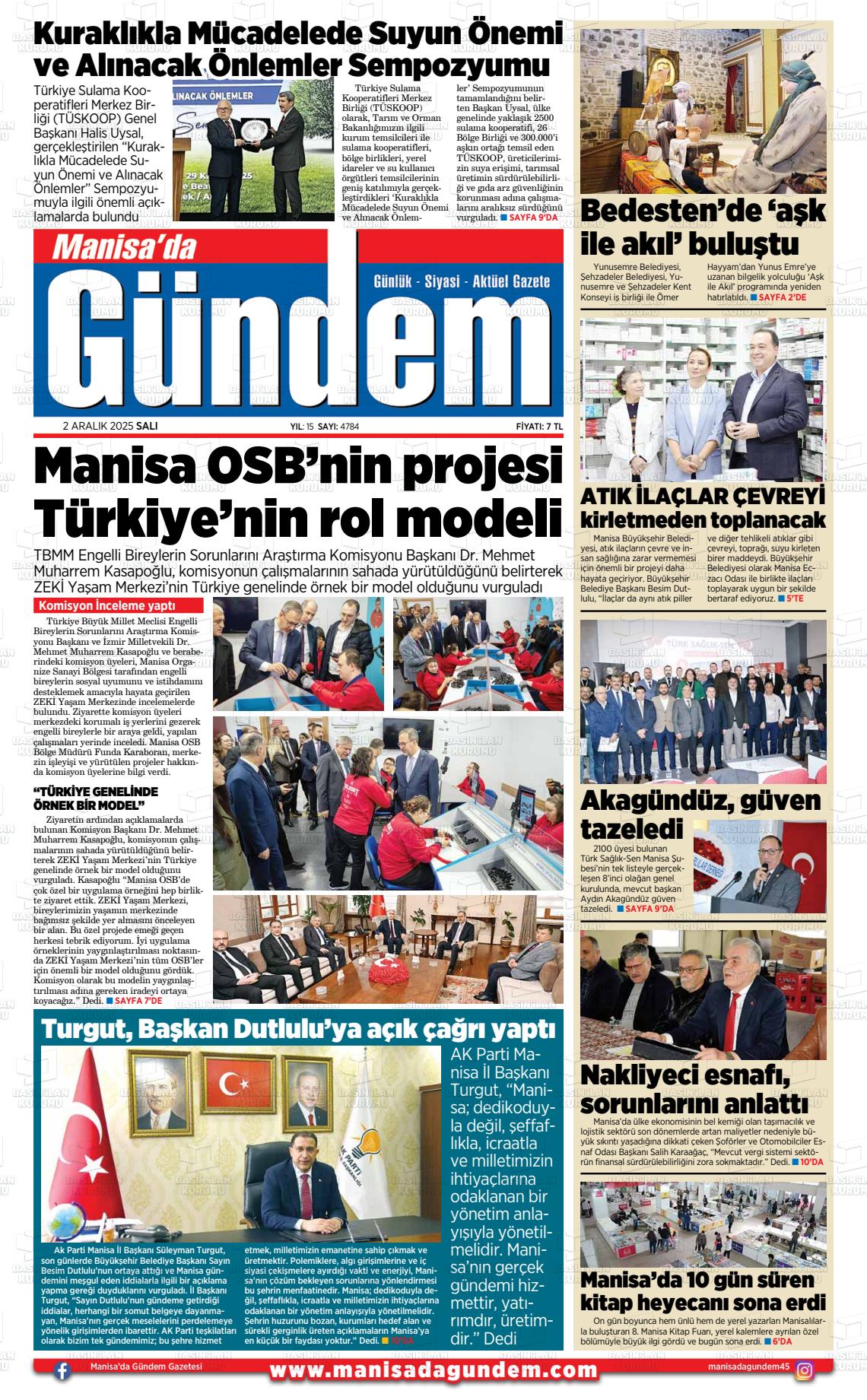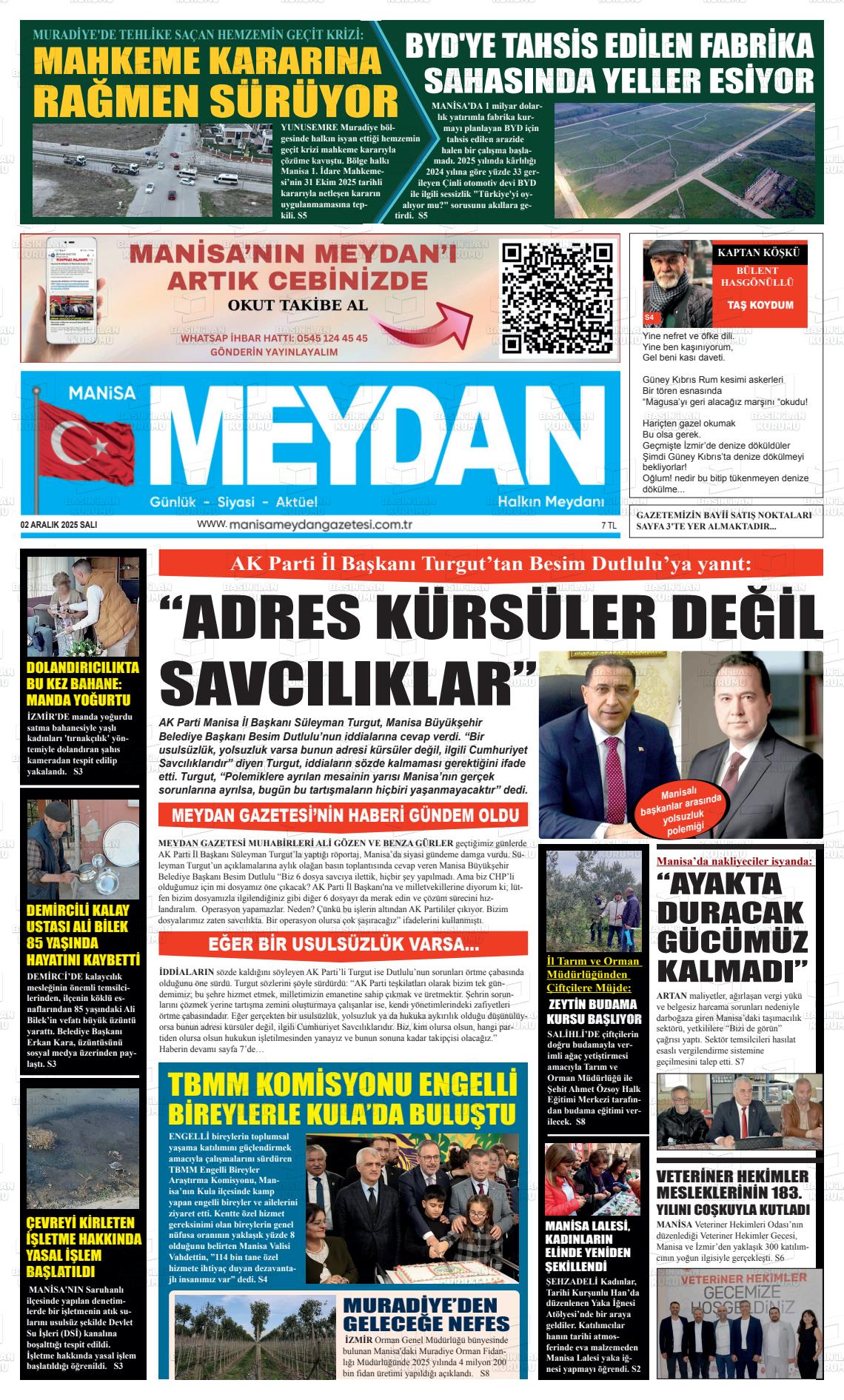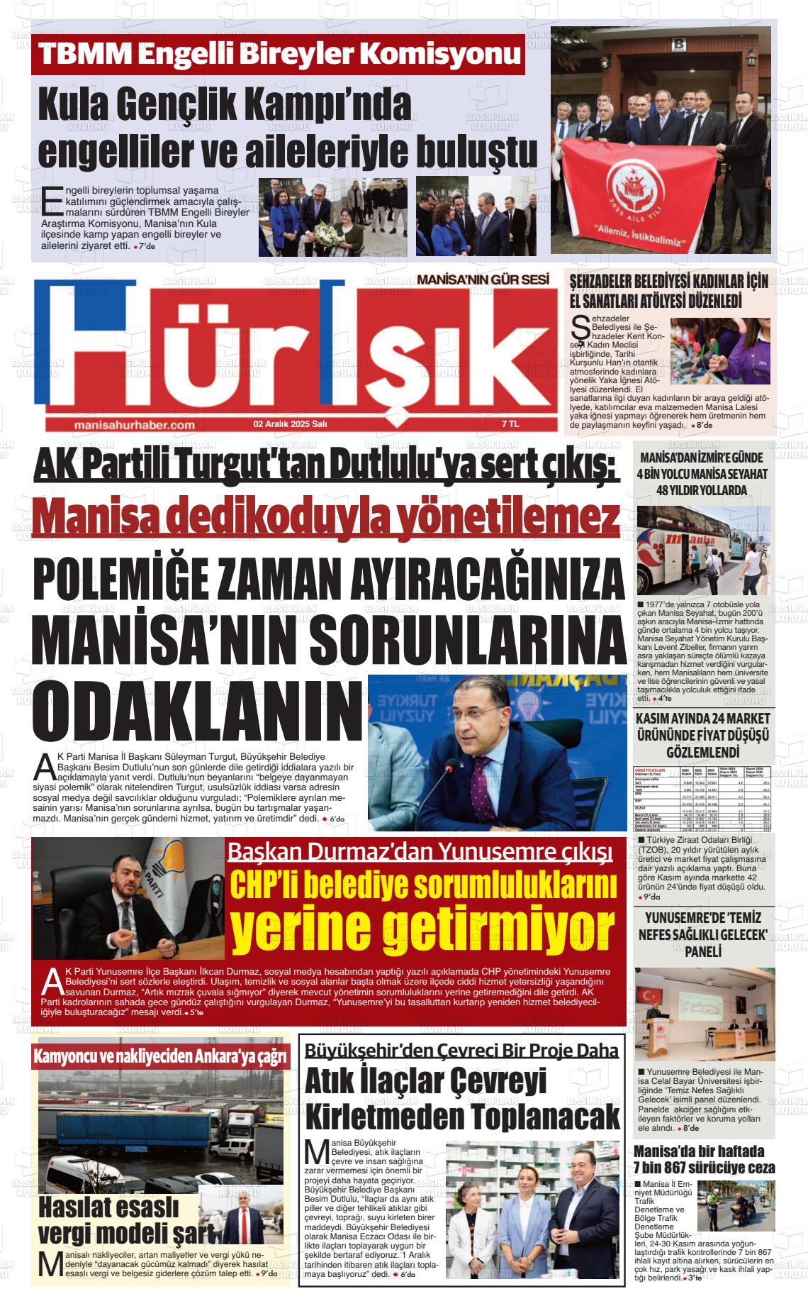 Manİsa Yerel Gazeteleri 02 Aralık 2025, Salı Günü Manşeti