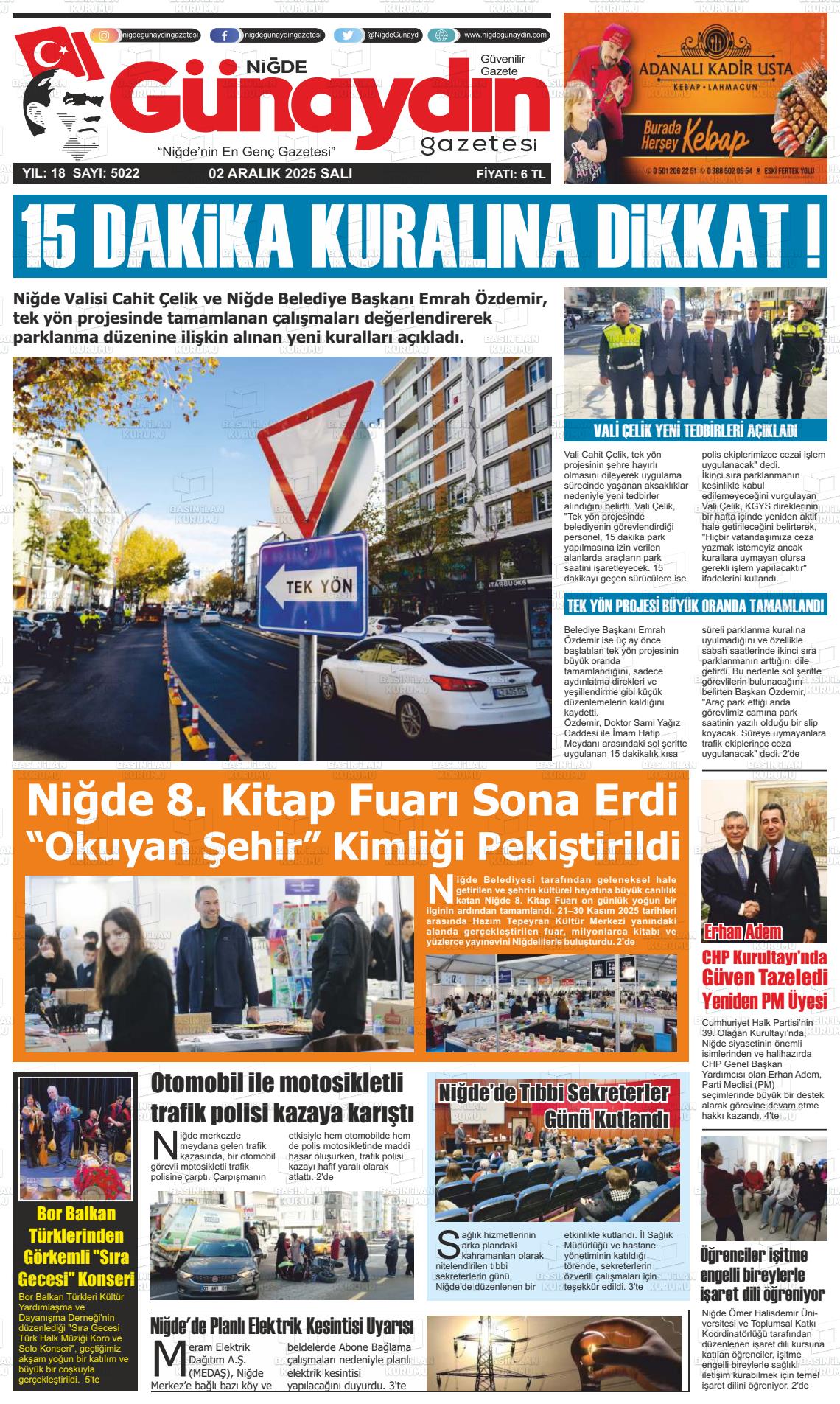 Nİğde Yerel Gazeteleri 02 Aralık 2025, Salı Günü Manşeti