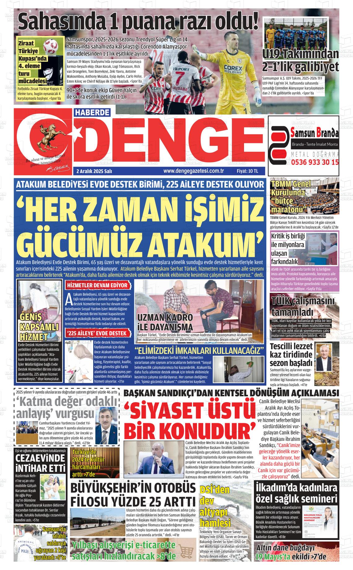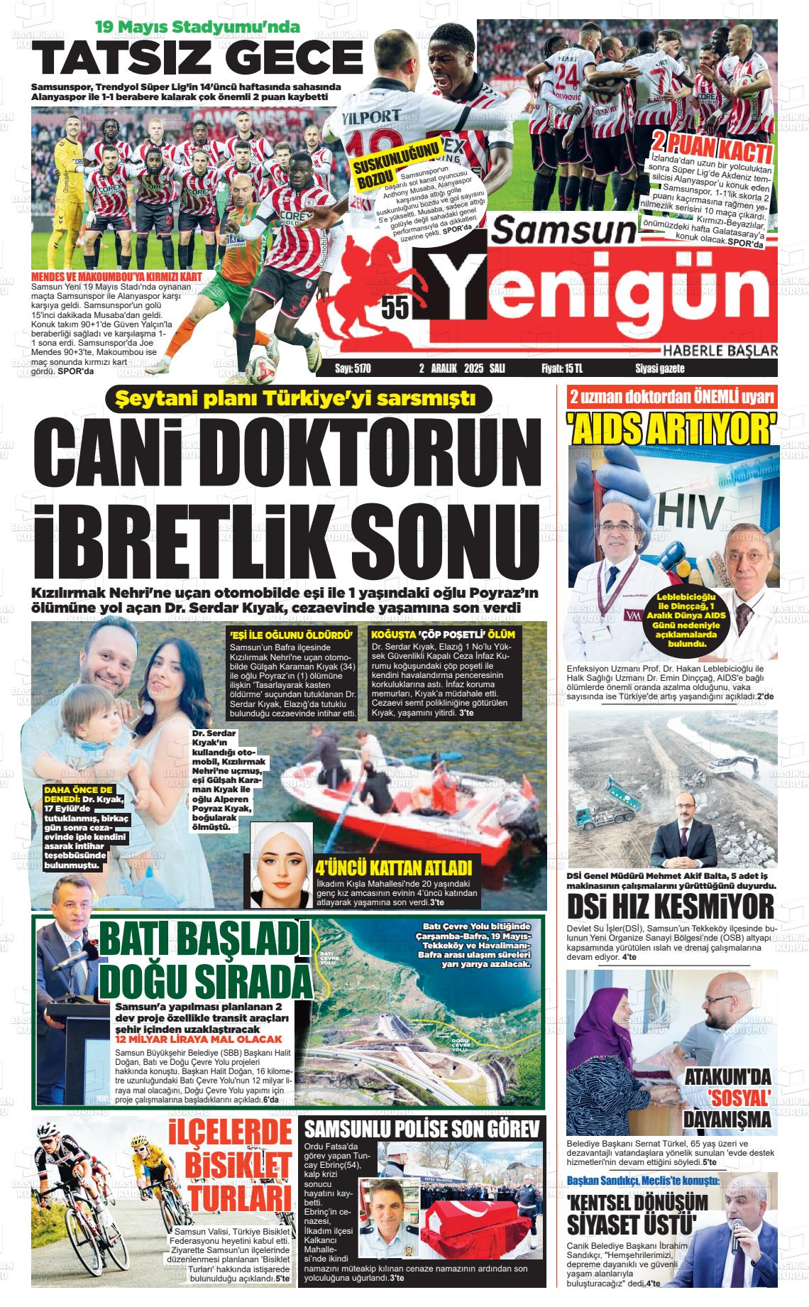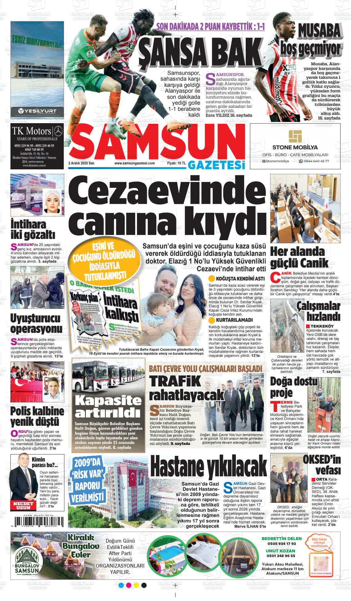 Samsun Yerel Gazeteleri 02 Aralık 2025, Salı Günü Manşeti