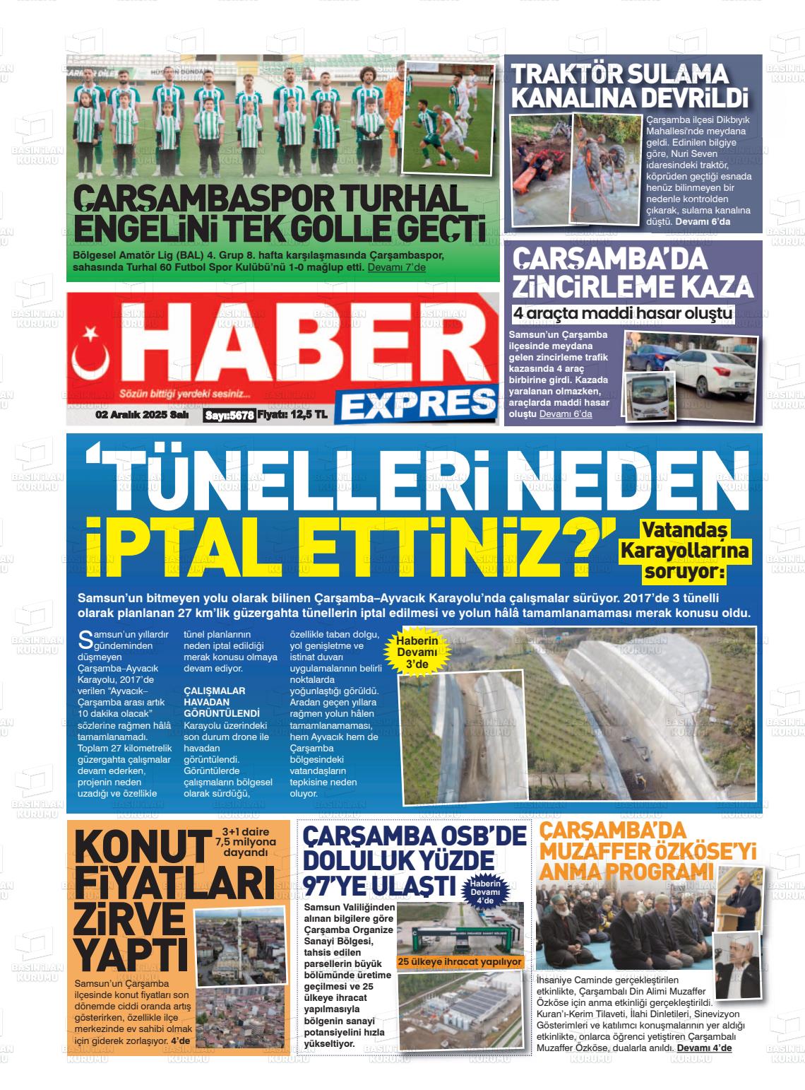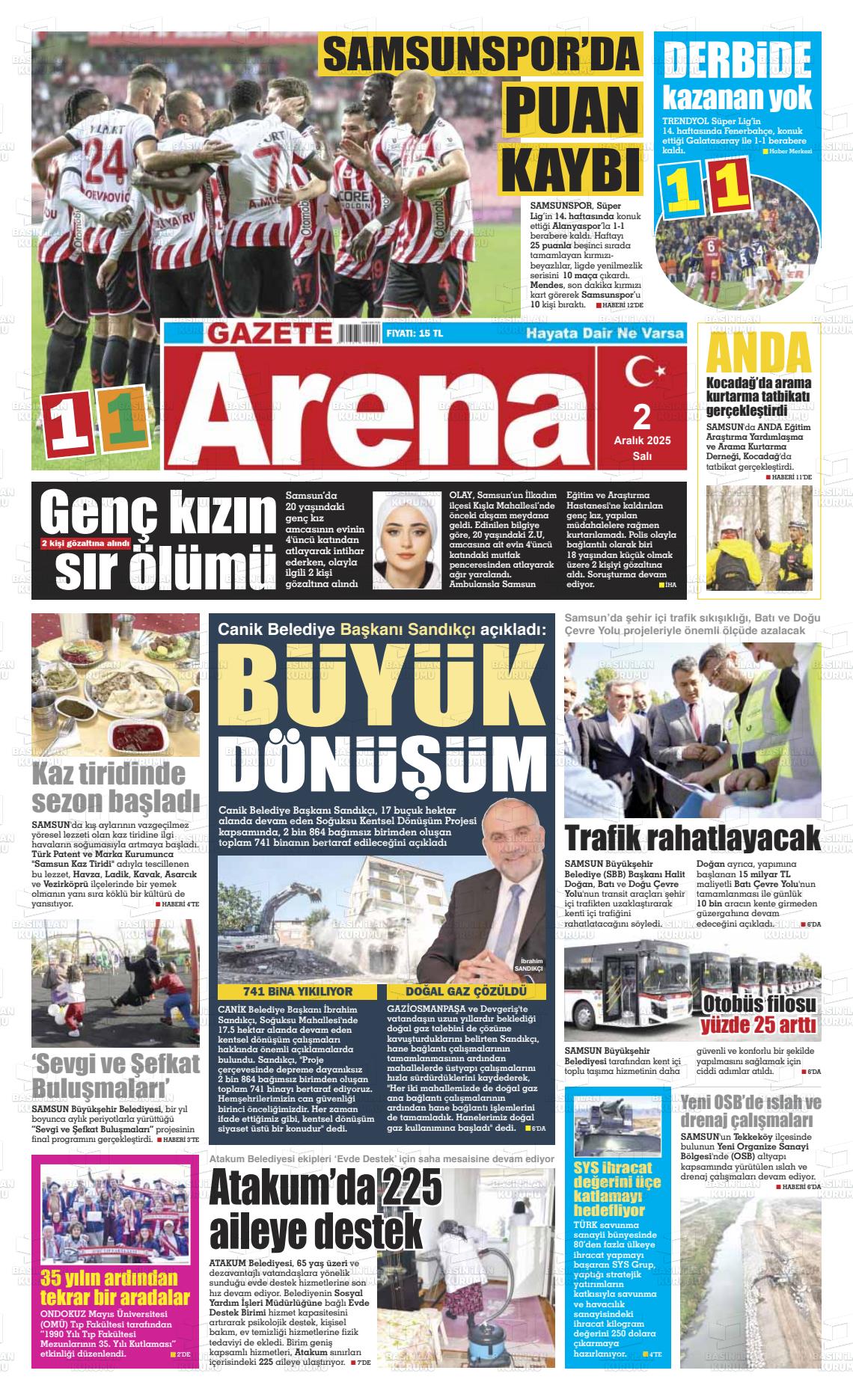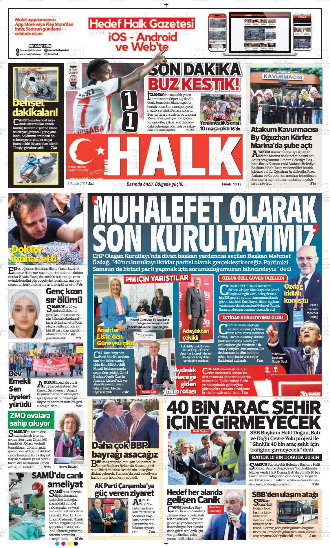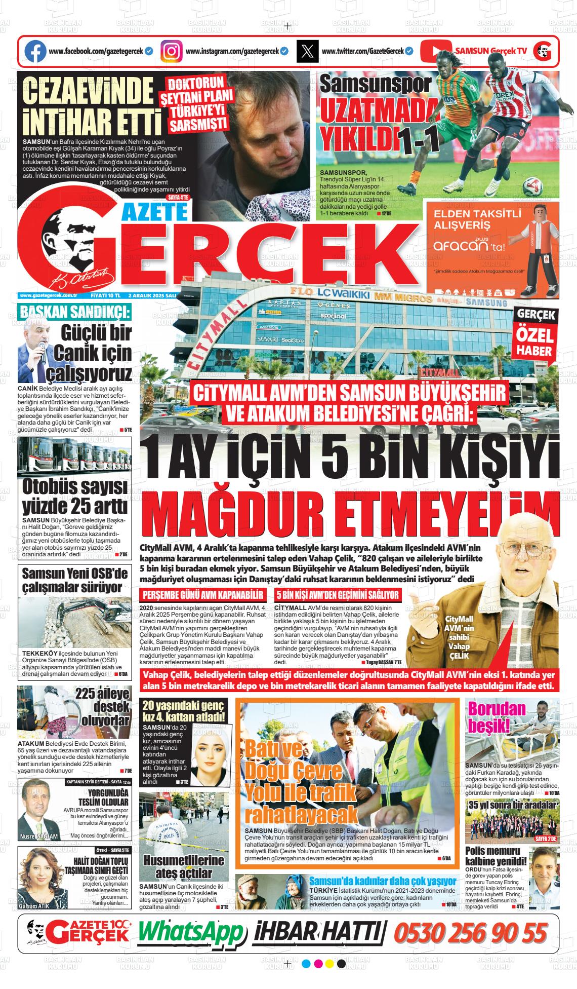 Samsun Yerel Gazeteleri 02 Aralık 2025, Salı Günü Manşeti