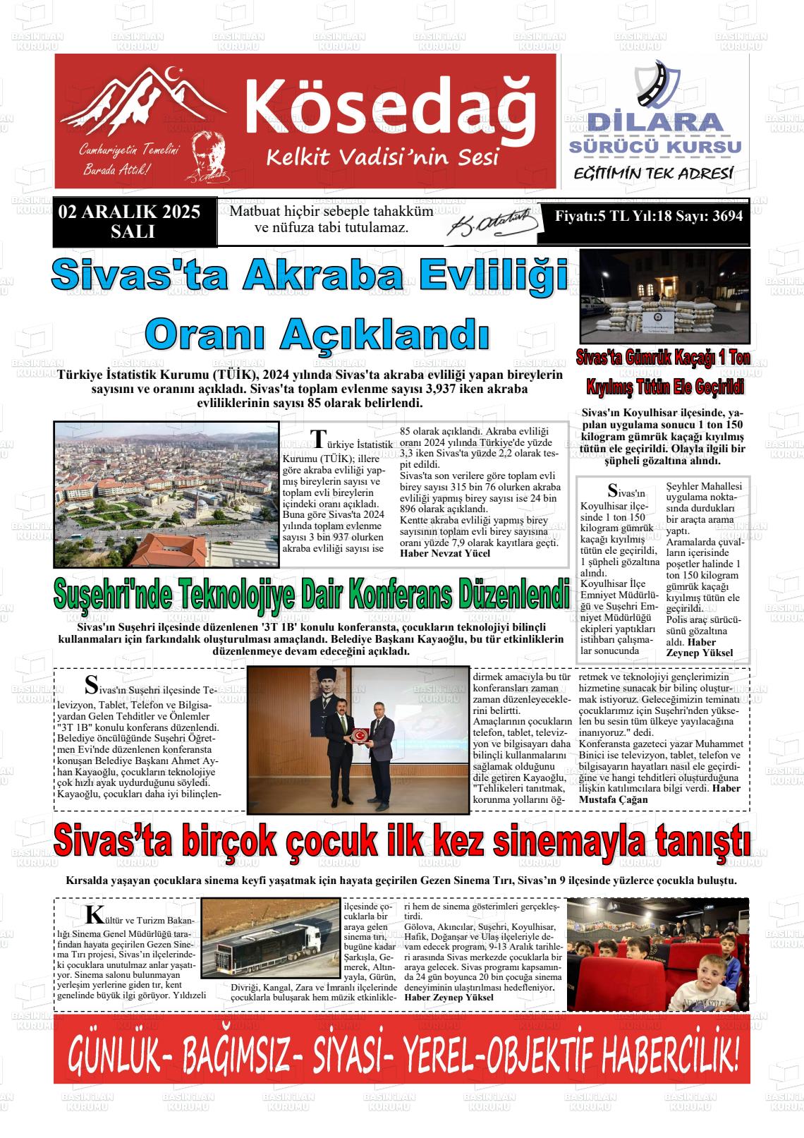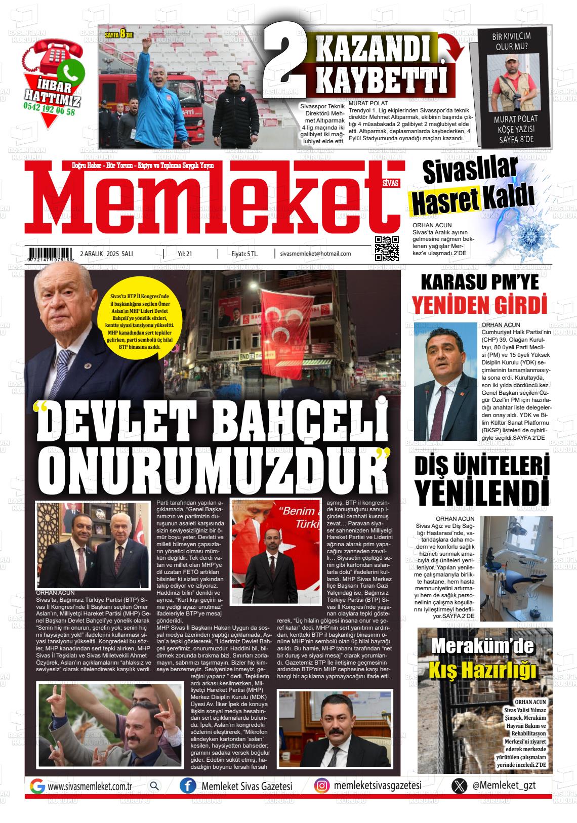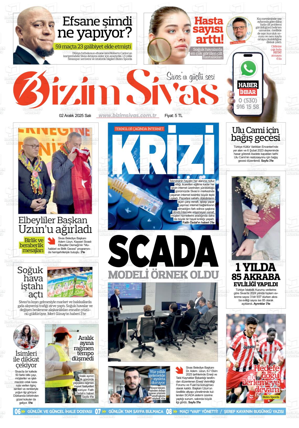 Sİvas Yerel Gazeteleri 02 Aralık 2025, Salı Günü Manşeti