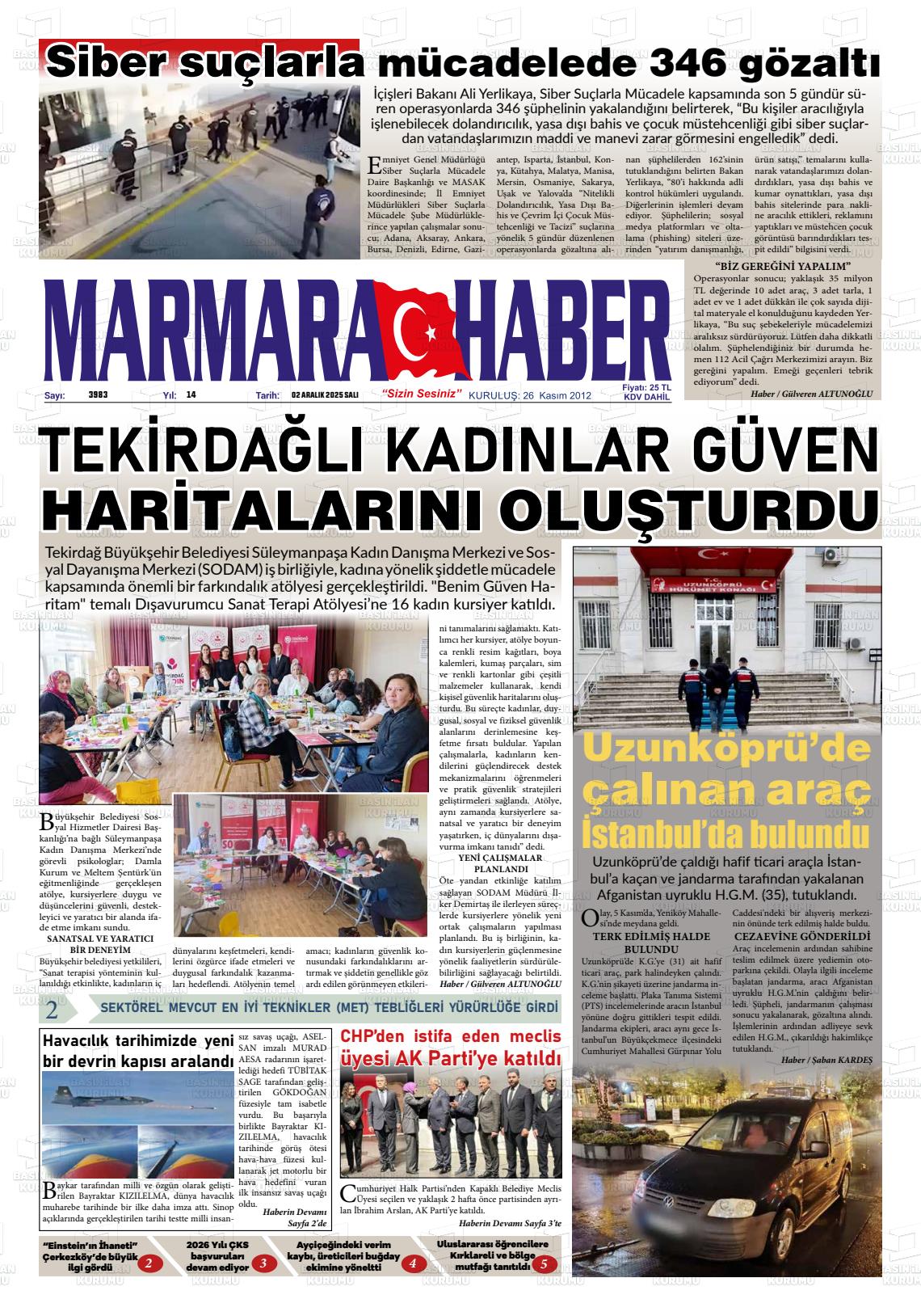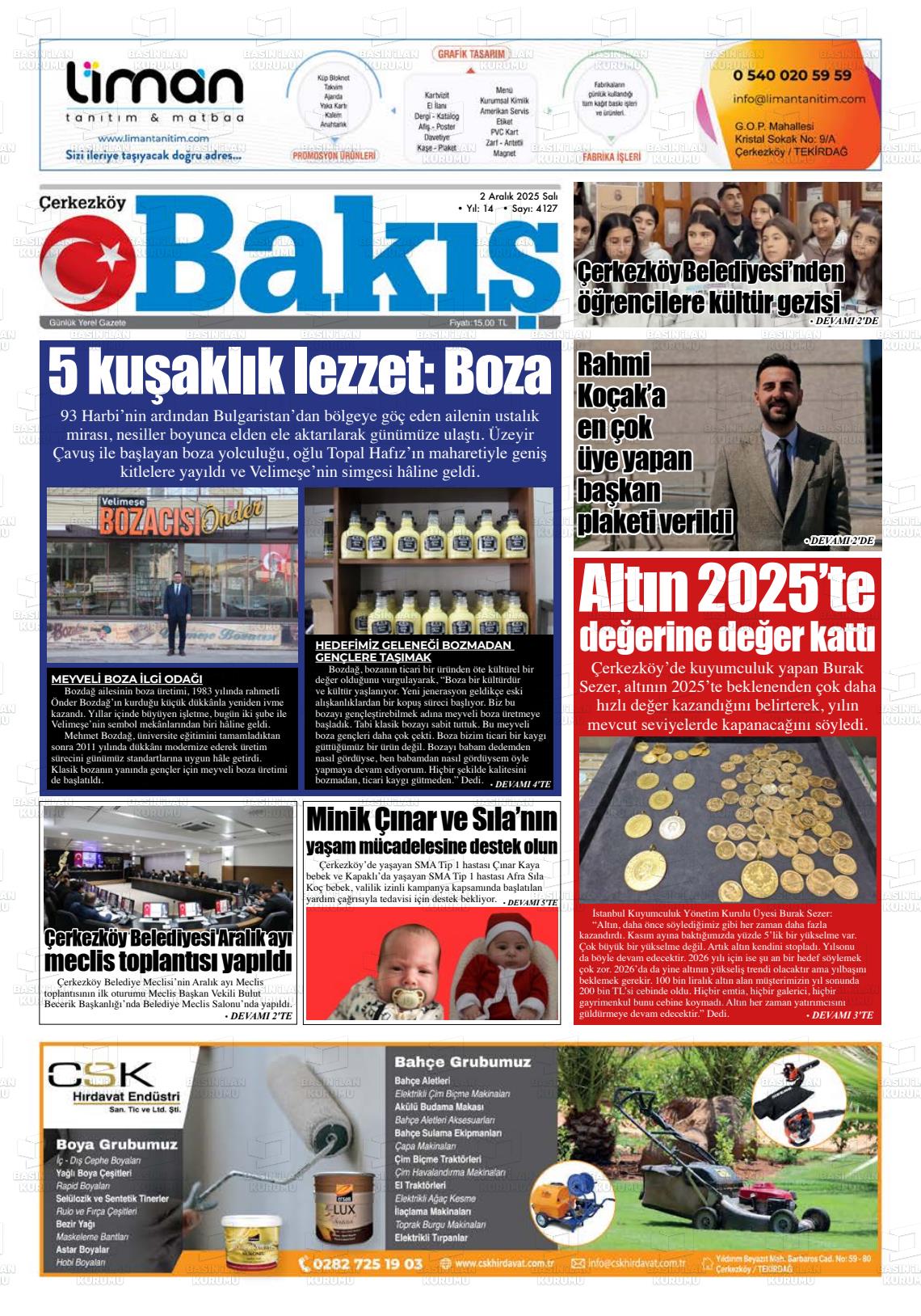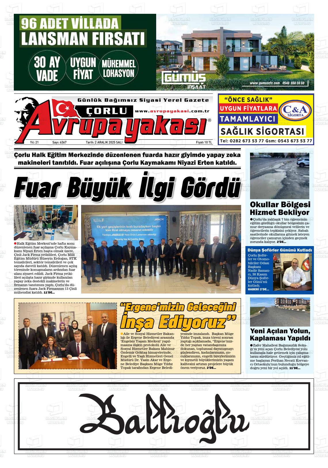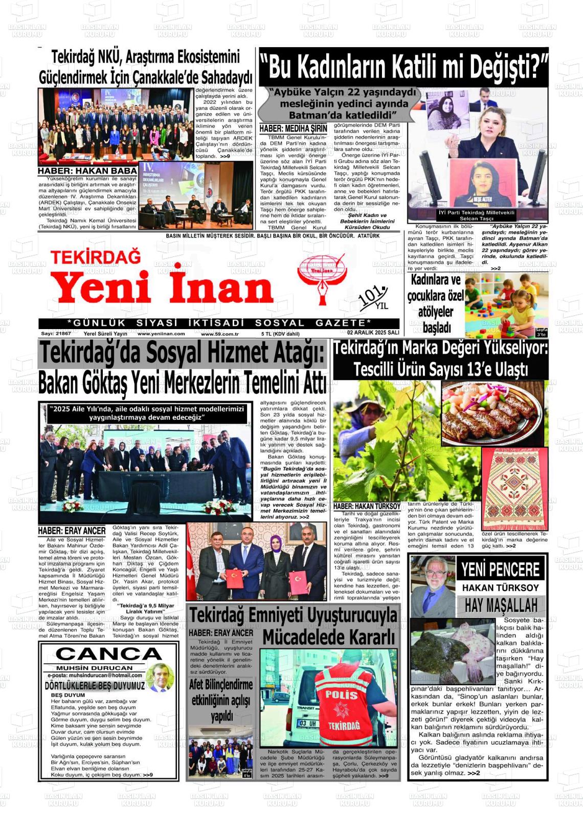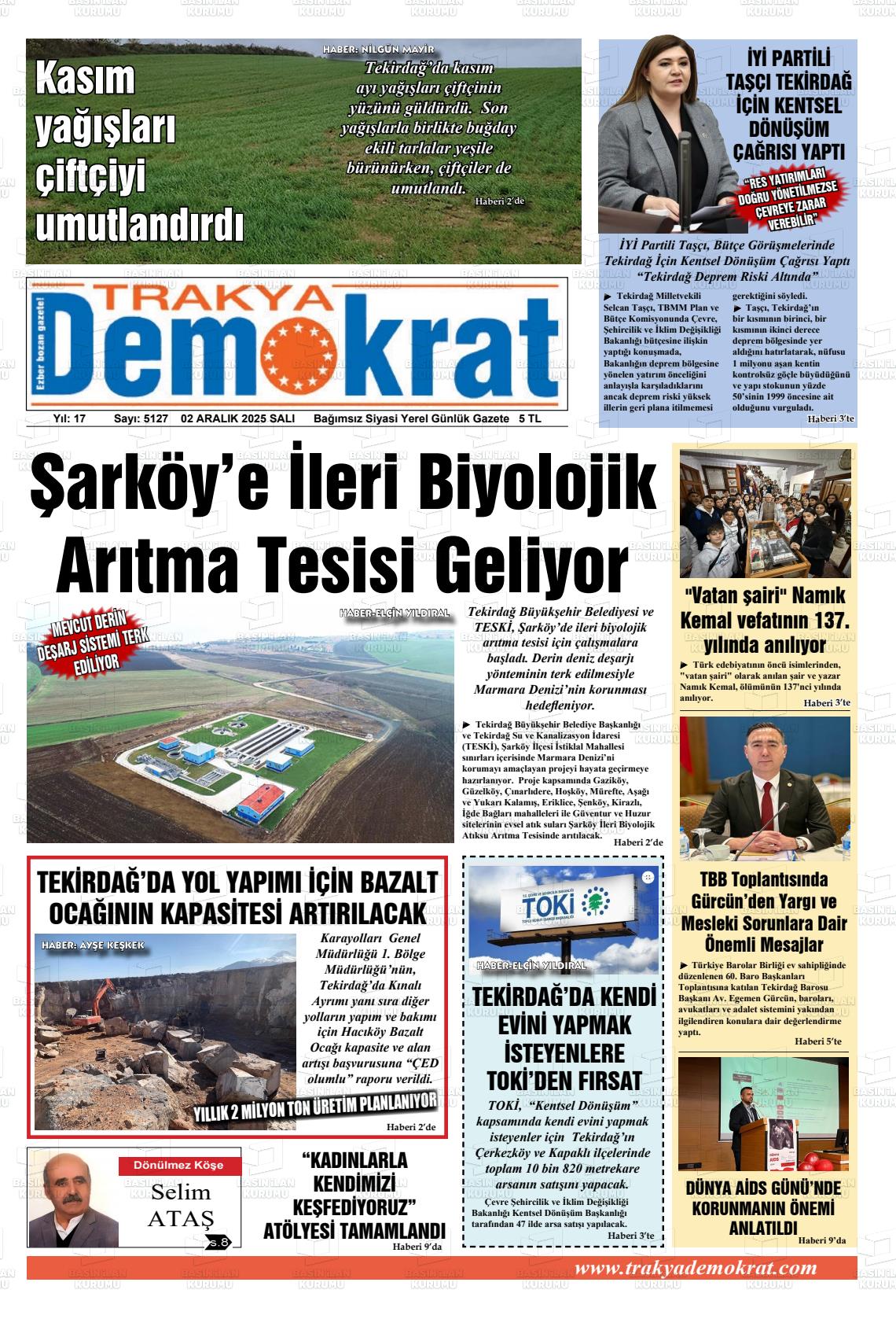 Tekİrdağ Yerel Gazeteleri 02 Aralık 2025, Salı Günü Manşeti