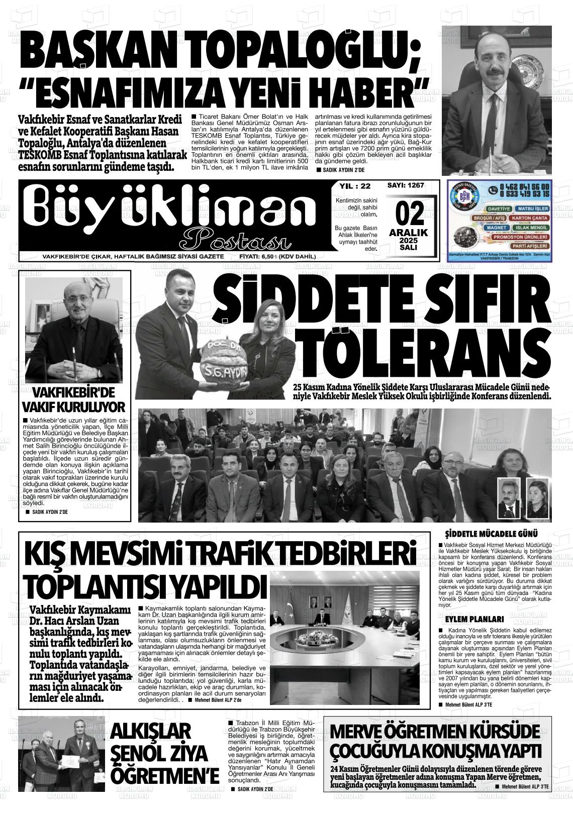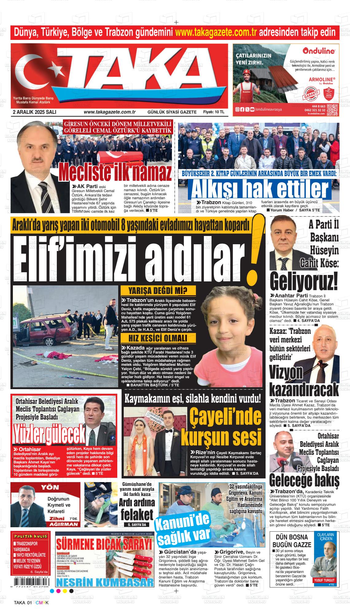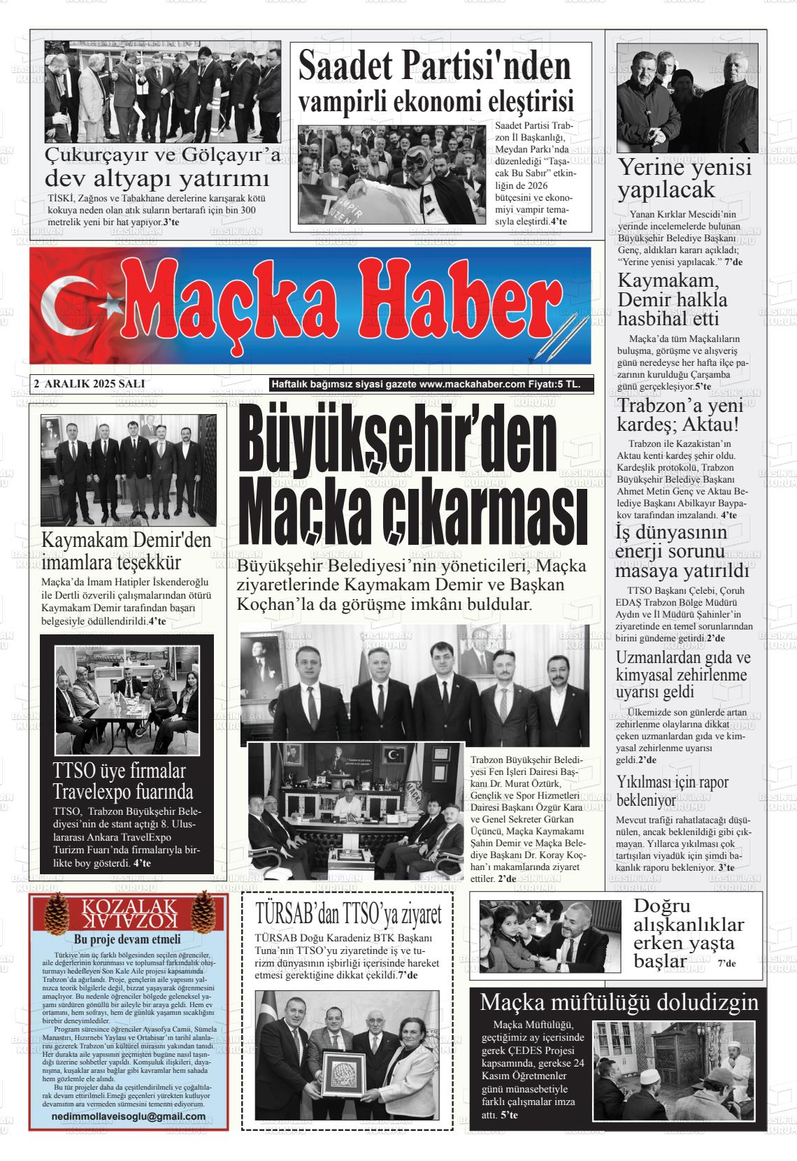 Trabzon Yerel Gazeteleri 02 Aralık 2025, Salı Günü Manşeti