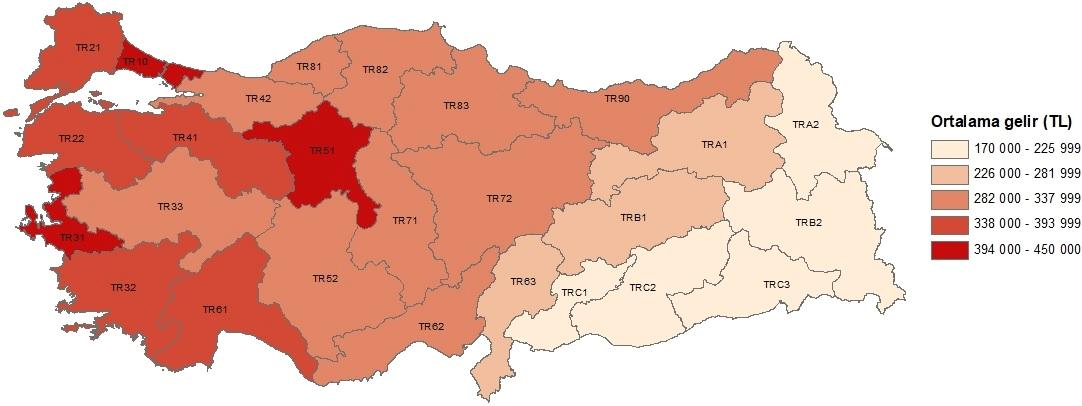 En düşük gelir TRB2 (Van, Muş, Bitlis, Hakkari) bölgesinde gerçekleşti