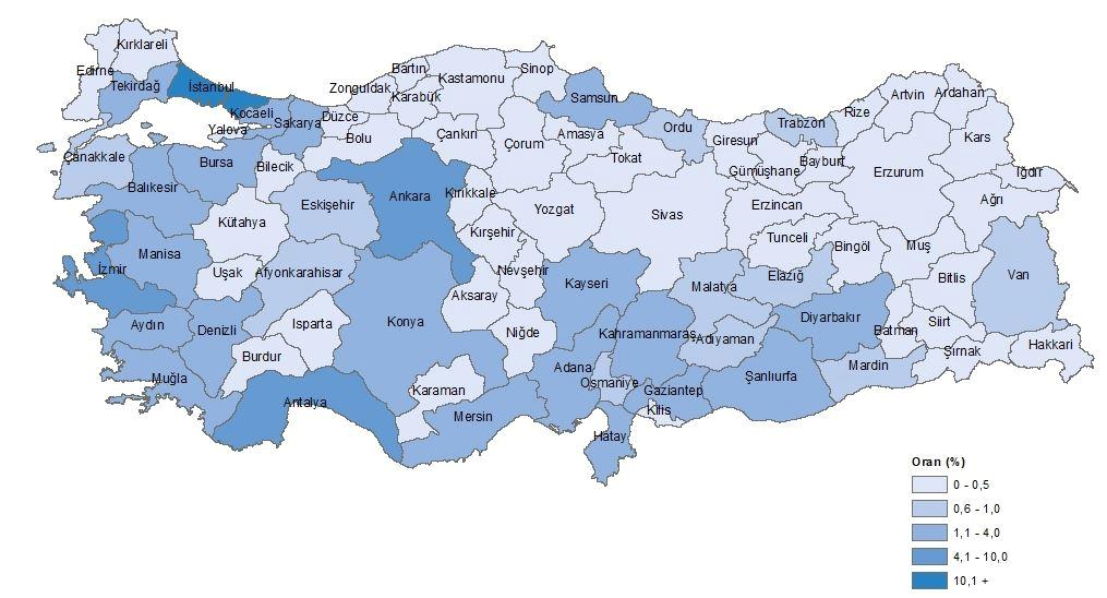 İstanbul’u sırasıyla %7,5 ile Ankara ve %6,5 ile İzmir takip etti.