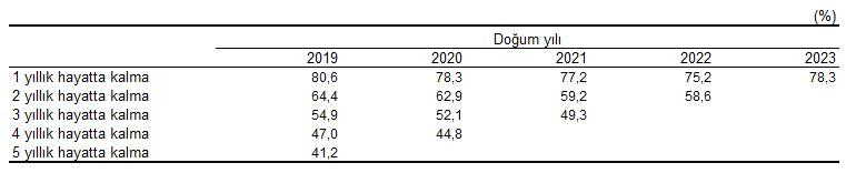 Doğum yıllarına nazaran hayatta kalma göstergeleri (%), 2019-2023