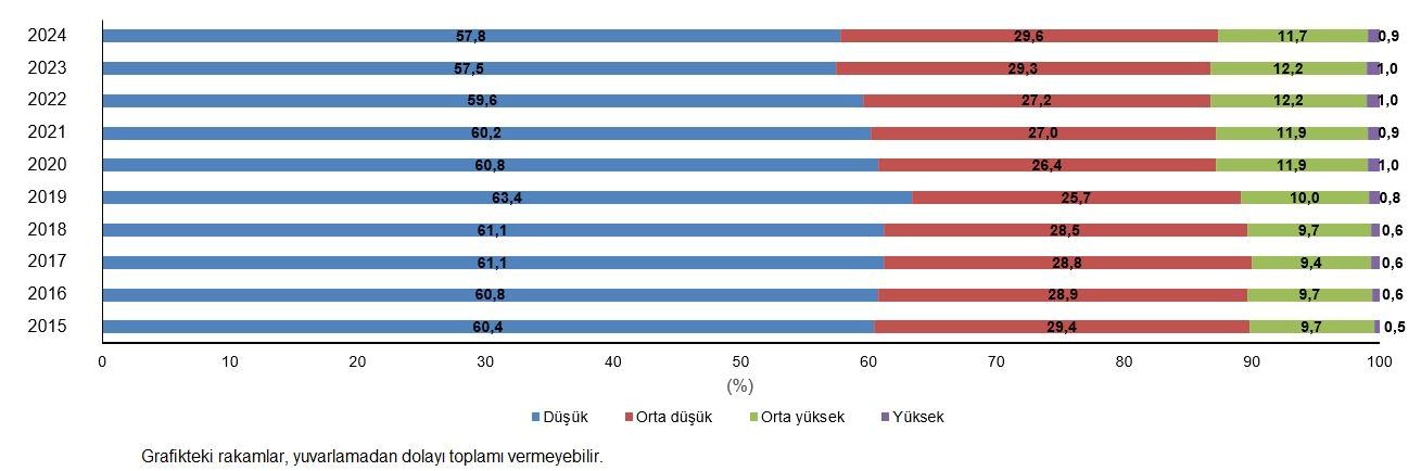 İmalat endüstrinde 2024 yılında doğan teşebbüslerin %29,6’sı orta düşük, %11,7’si orta yüksek, %0,9’u ise yüksek teknoloji seviyesine sahip eserleri üreten teşebbüsler oldu.