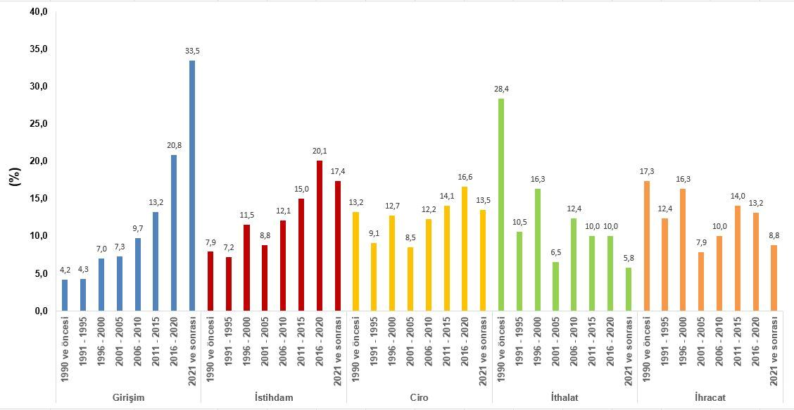 Girişimlerden 2021 ve sonrasında kurulanlar ise %17,4’lük istihdam hissesine sahip oldu.