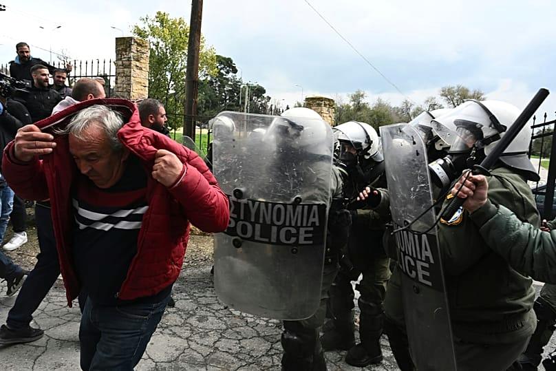 Riot police in Greece fired tear gas at farmers on Friday who were attempting to block the main access road to the international airport in Thessaloniki as protests escalated over delays in the payment of European Union-backed agricultural subsidies.