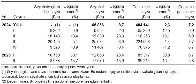 Seyahate çıkan kişi, seyahat ve geceleme sayıları, II. Çeyrek: Nisan-Haziran, 2025